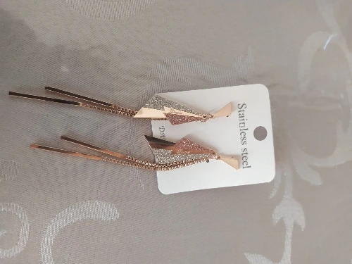 Отличные серьги по чудесной цене! Выглядят очень похоже на розовое золотые. Изысканные, аккуратные с необычным дизайном в корейском стиле. Подойдут и для праздников, и для повседневного ношения. Гипоаллергенны. Впервые вижу красивые серьги, сделанные из нержавеющей стали! Пришли быстро, в совмещённой посылке. Спасибо продавцу за качественный товар! Рекомендую