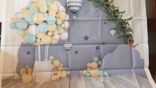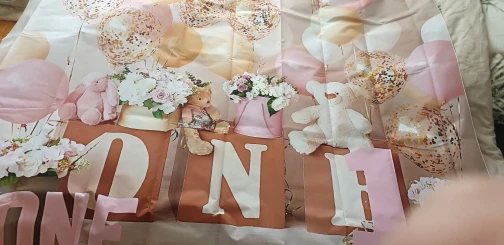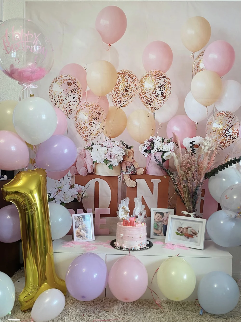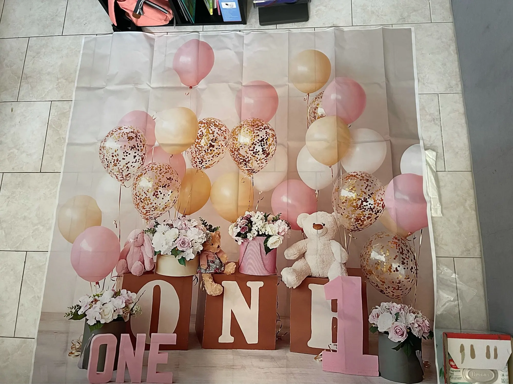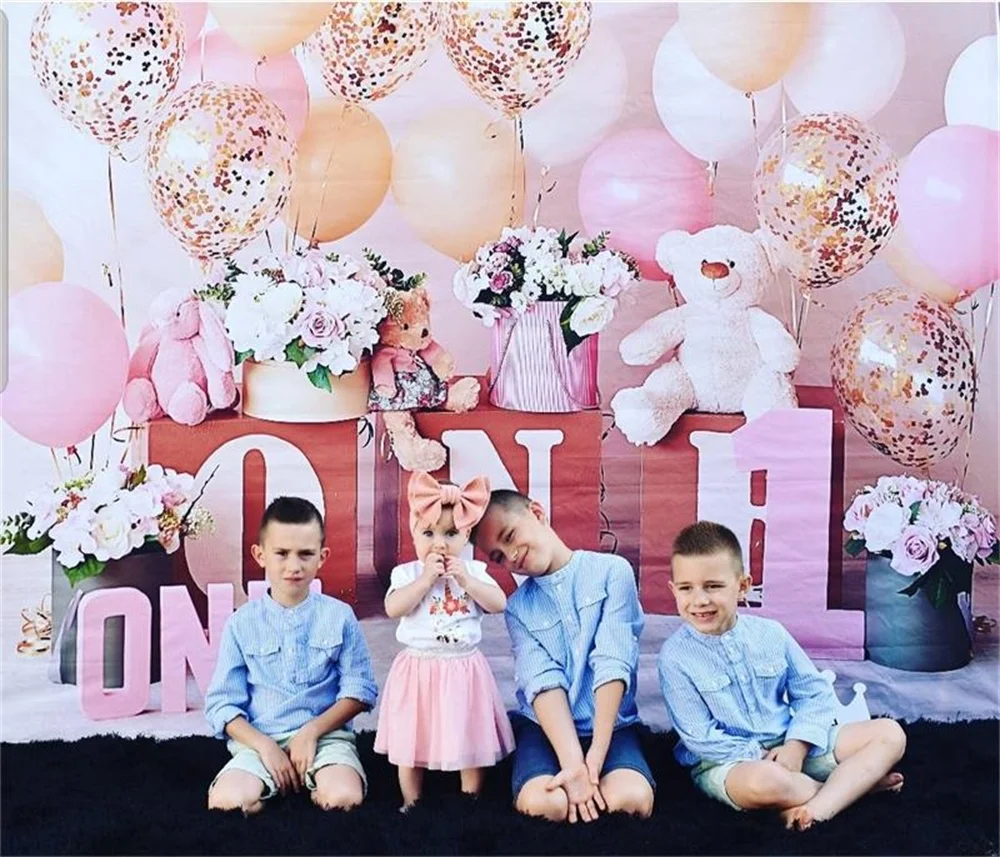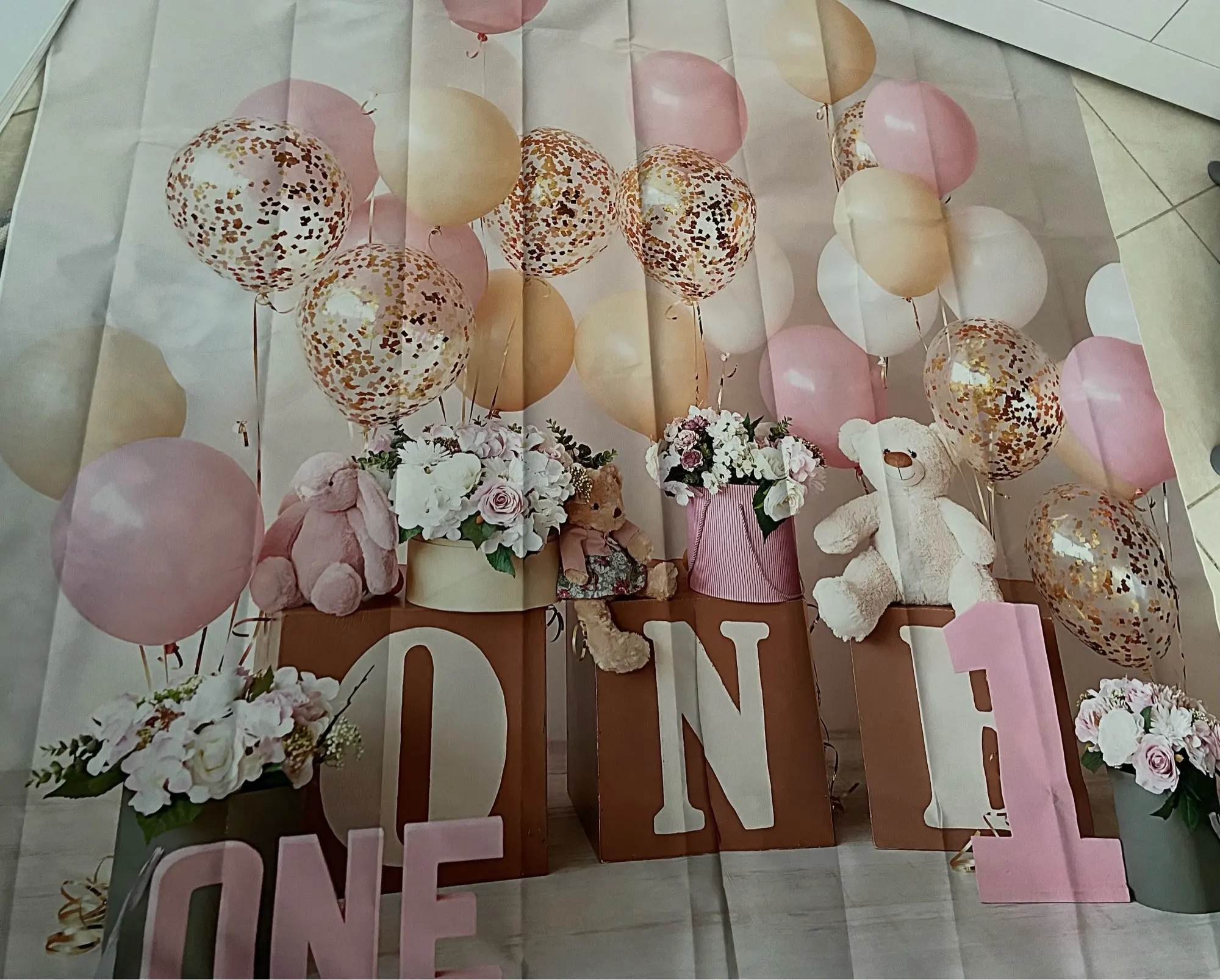 Розовый фон для студийной фотосъемки с изображением первого дня рождения воздушного шара вечевечерние НКИ детского медведя празднования семейной съемки портрета