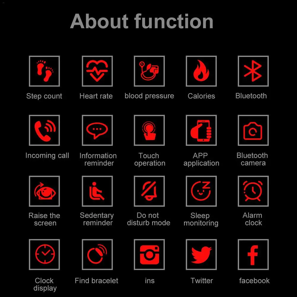Параметры продукта:Емкость аккумулятора: 100 мАчТип батареи: литий-полимерный аккумуляторДисплей: цветной экран 0,96 HDПриложение: YOHOТребования к устройству: Bluetooth 4,0 Поддержка телефона Android 4,3 или IOS8.0 или вышеЦвета: черный, синий, красный, фиолетовый, голубойОсобенности продукта:Динамический мониторинг сердечного ритма и артериального давления, спортивный шагомер (3D датчик), расход калорий, расстояние, связь Bluetooth, напоминание о звонках, напоминание о информации, активация экрана, поднятие руки, умный будильник, поиск браслета, удаленное фотографирование, напоминание о сидячем положении, мониторинг сна, информационный push (SMS, Wechat, QQ, Facebook, Twitter, WhatsAPP и т. д.), чтение информации и так далее.Посылка:Смарт-браслет 115plus * 1Описание * 1Цветная коробка * 1