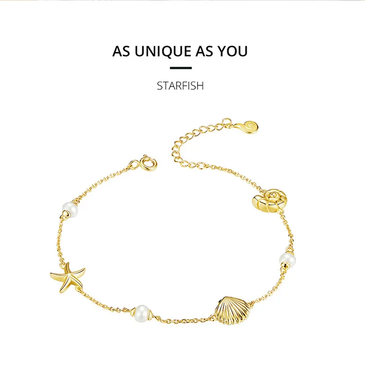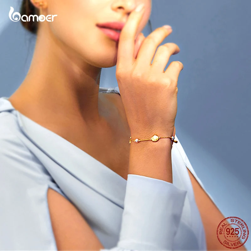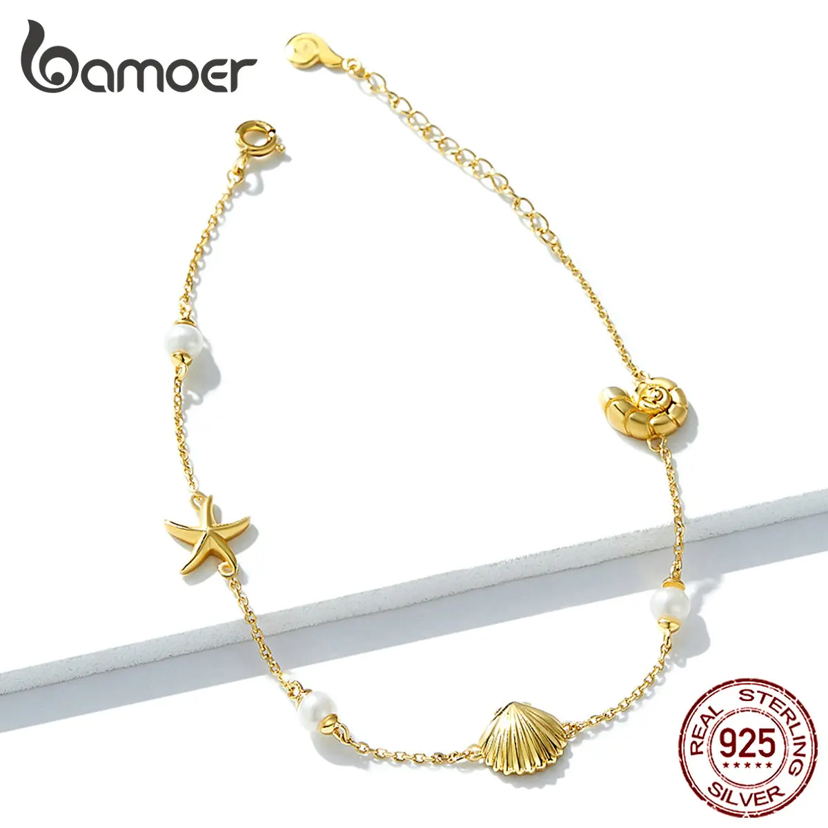 Женский браслет-цепочка Bamoer, элегантный браслет из стерлингового серебра 925 пробы с жемчугом в виде морской звезды