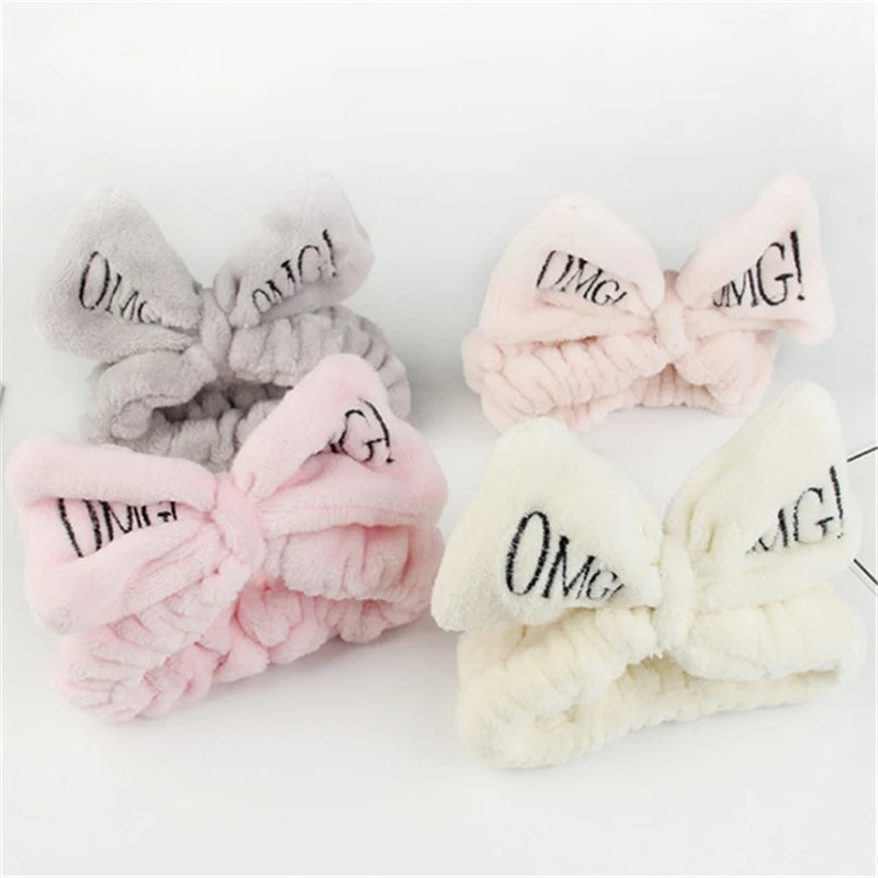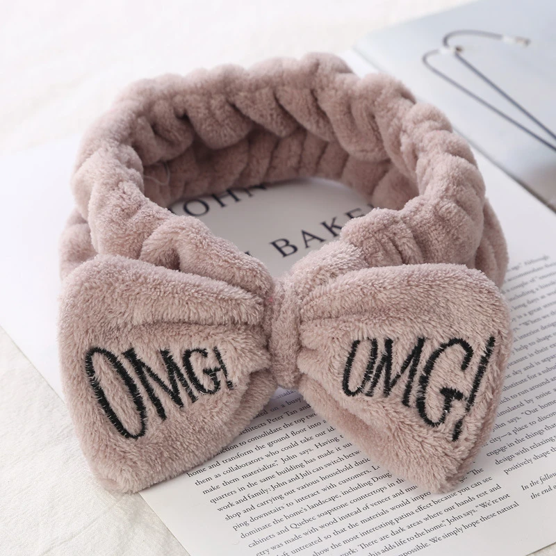 Повязка на голову женская из кораллового флиса с бантом и надписью OMG