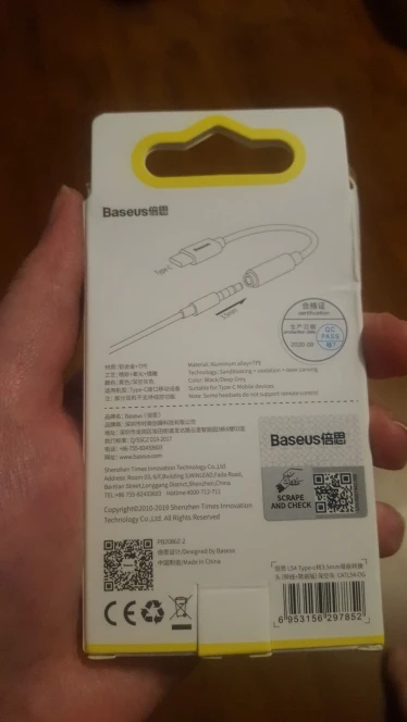 Доставка 10 дней, Baseus молодцы . Теперь о шнуре... тонюсенький, звук с ним заметно тише и хуже , выдает 16 bit , а не 24...бесполезная вещь, ну если только кому край как переходник нужен и на звучание пофиг.