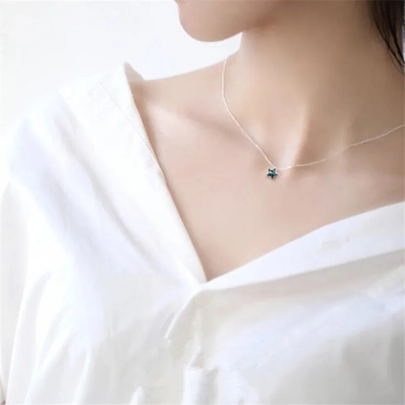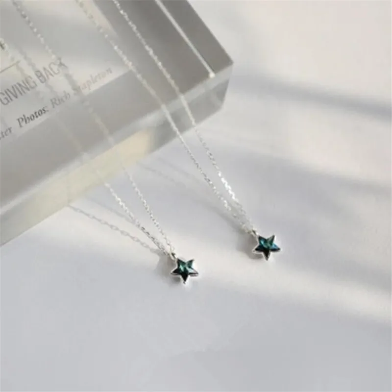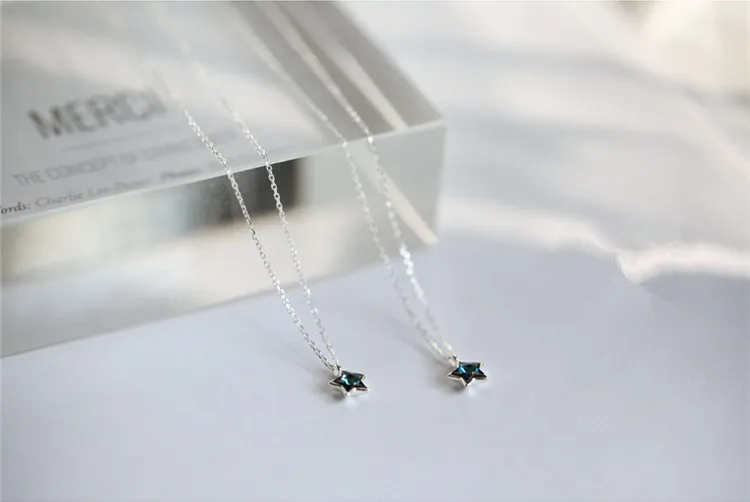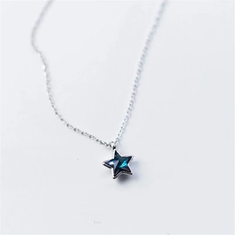 Новинка красивые синие кристаллы милые пятиконечные звезды ювелирные изделия из стерлингового серебра 925 пробы темпераментная цепочка подвеска ожерелья XL159