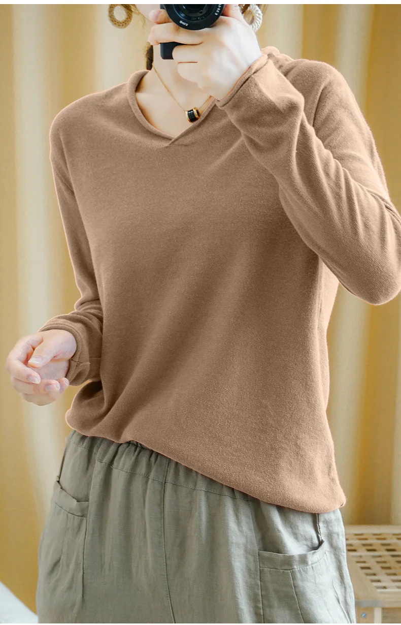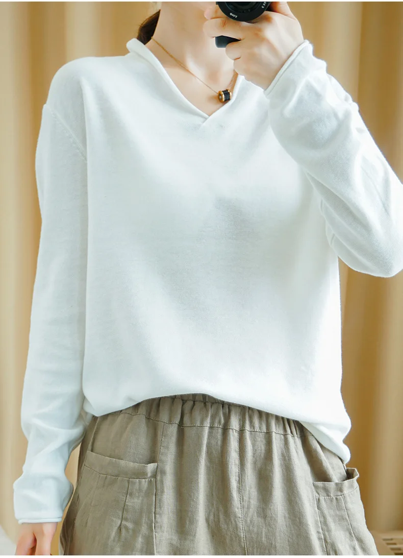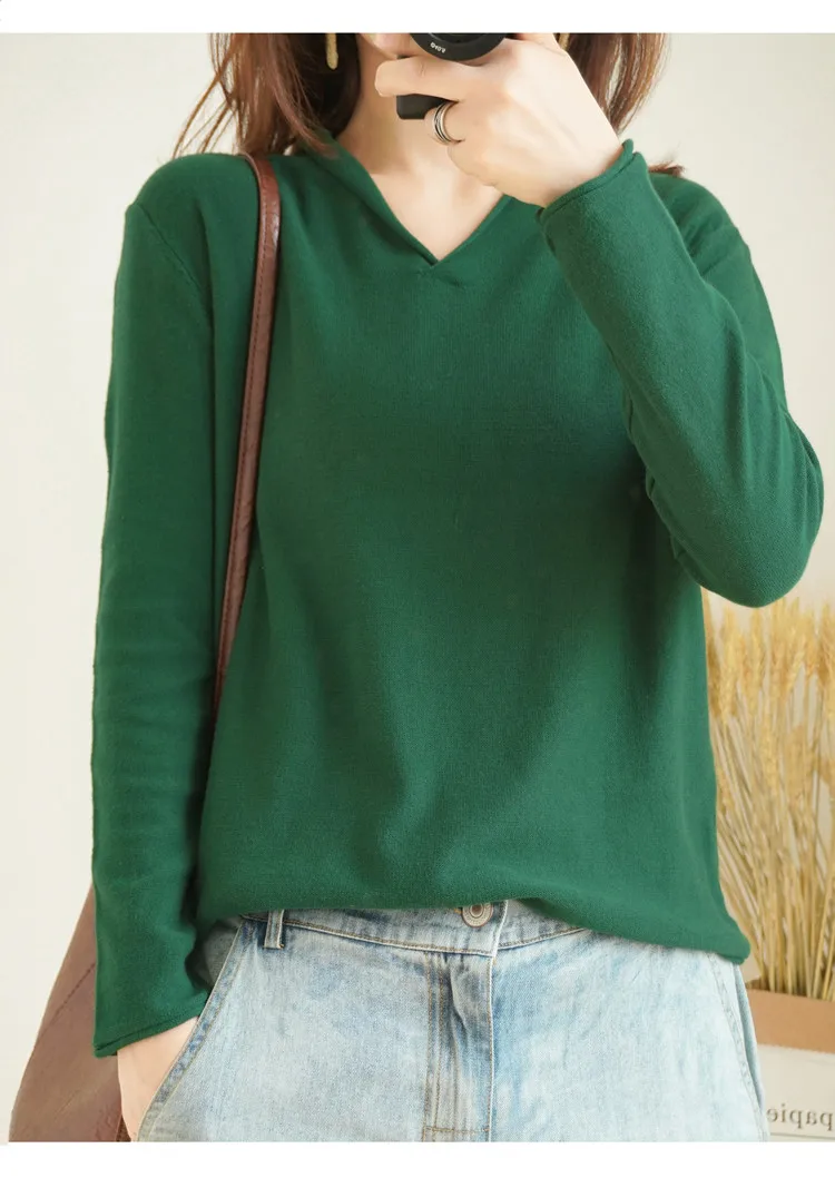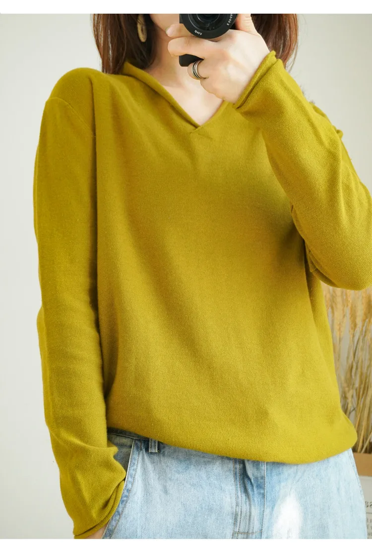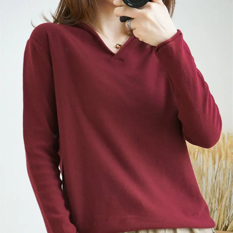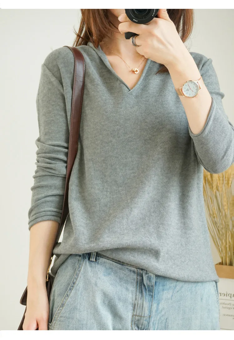 Smpevrg 19 100% хлопковый вязаный свитер женский пуловер с длинным рукавом и v-образным вырезом для женщин пуловер женский свободный модный джемпер Pull Femme
