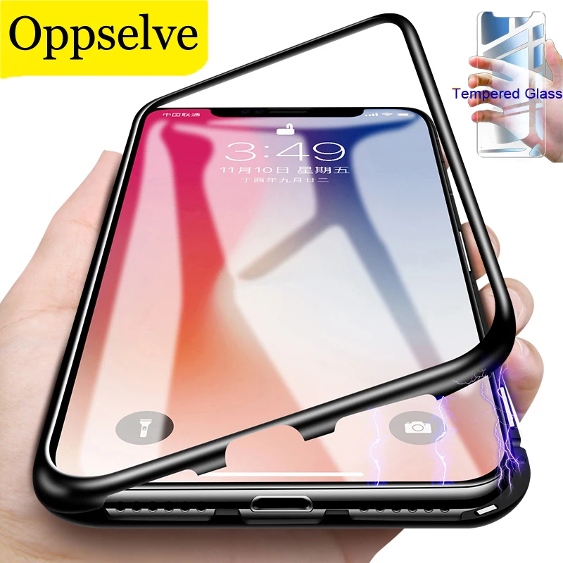 DesignMagnetic Metal Tempered Glass Screen Protector Case For iPhone X Xr Xs