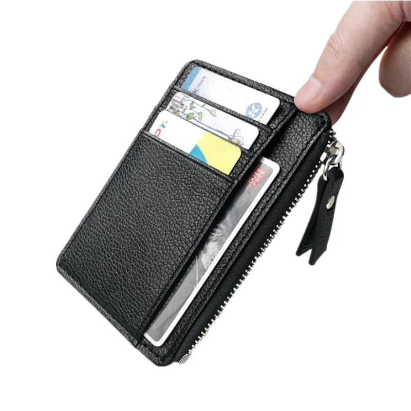 Черный мужской тонкий кошелек для кредитных карт на молнии, 1 шт.