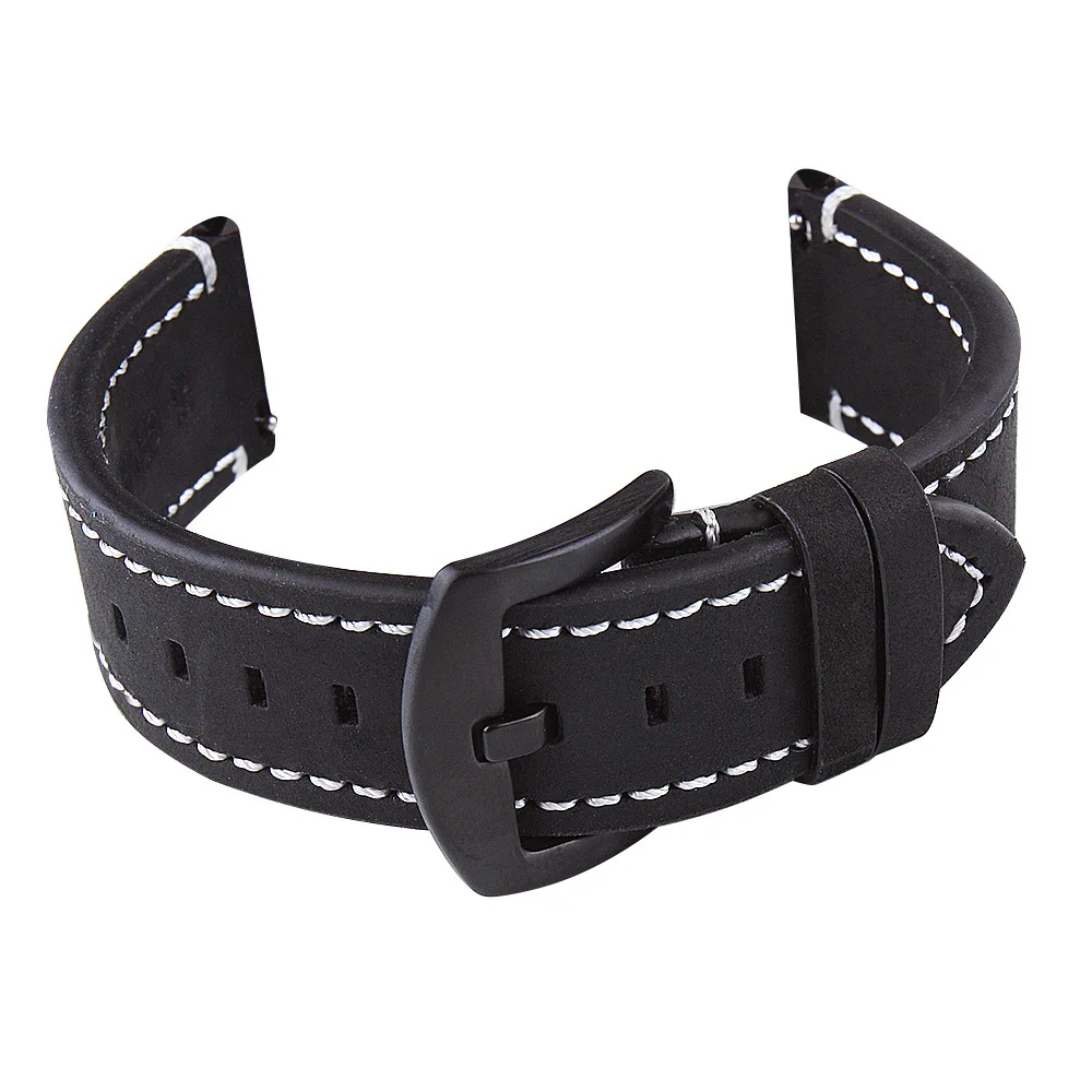 Ремешок из натуральной кожи для наручных часов, черный металлически...