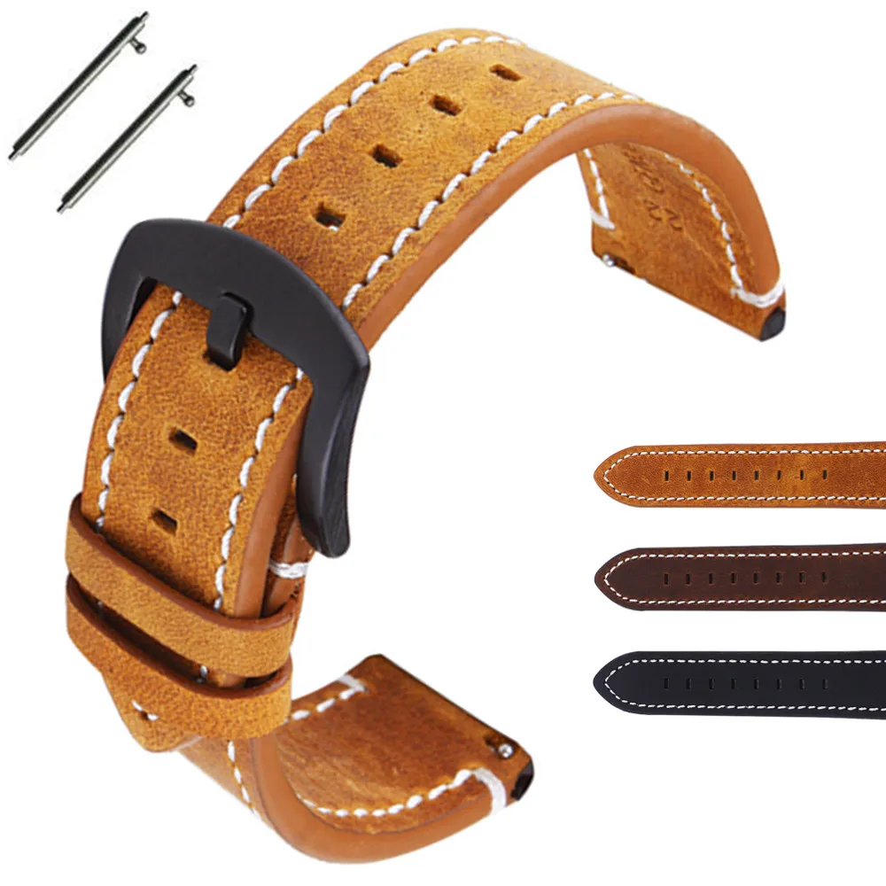 Длина ремешка:125 + 75 мм Материал:Натуральная кожа Цвет:Как на картинке РемешокШирина:18 мм 20 мм 22 мм Посылка:1 шт. ремешок для часов + 3 шт. пружинный стержень + 1 шт. инструмент