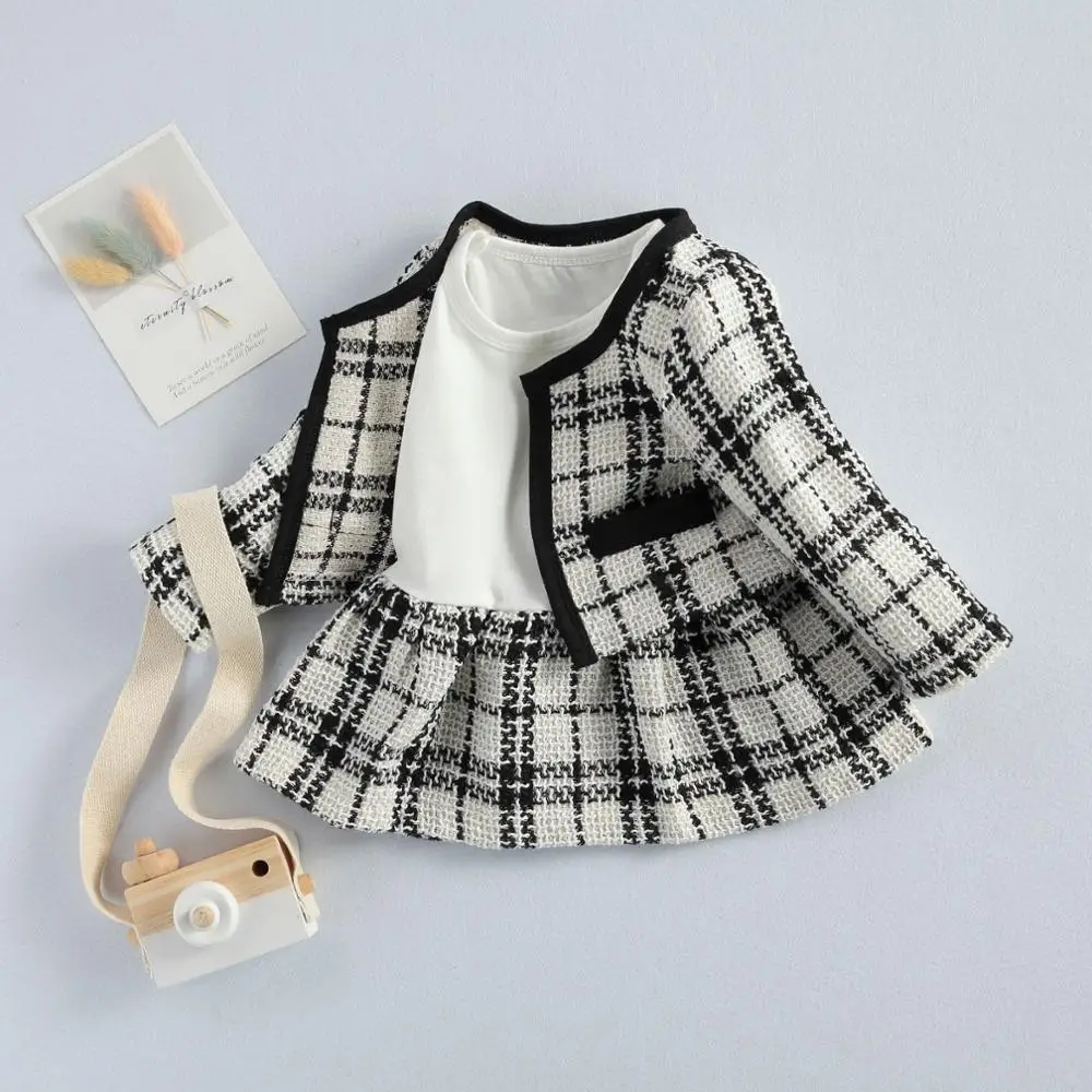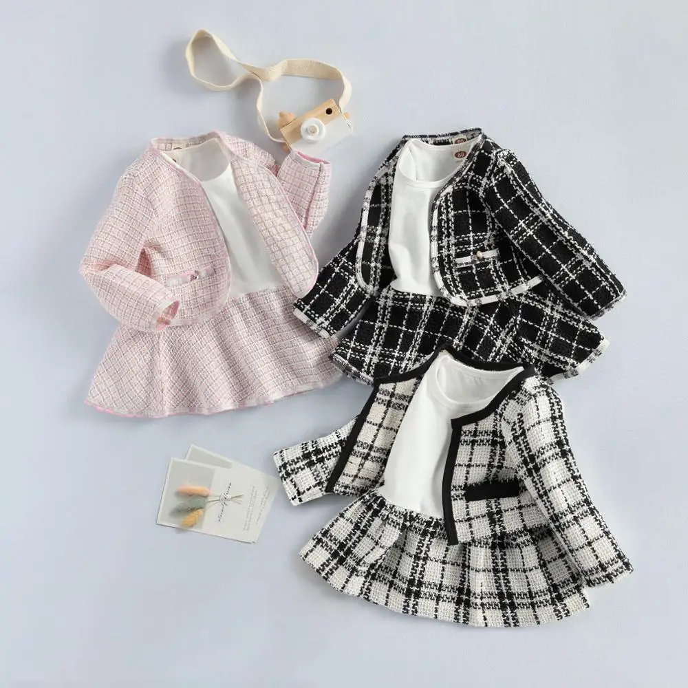 Комплект одежды из 2 предметов для девочек, теплое пальто в клетку с длинным рукавом и платье, вечерние день рождения, 2020