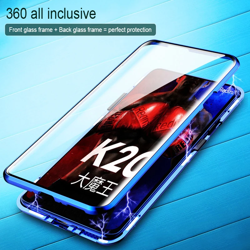 Для Xiaomi Redmi K20 Pro Чехол металлический магнитный двусторонний стеклянный + металлический бампер чехол для телефона для Xiaomi Redmi Note 7 Mi 9T SE чехол