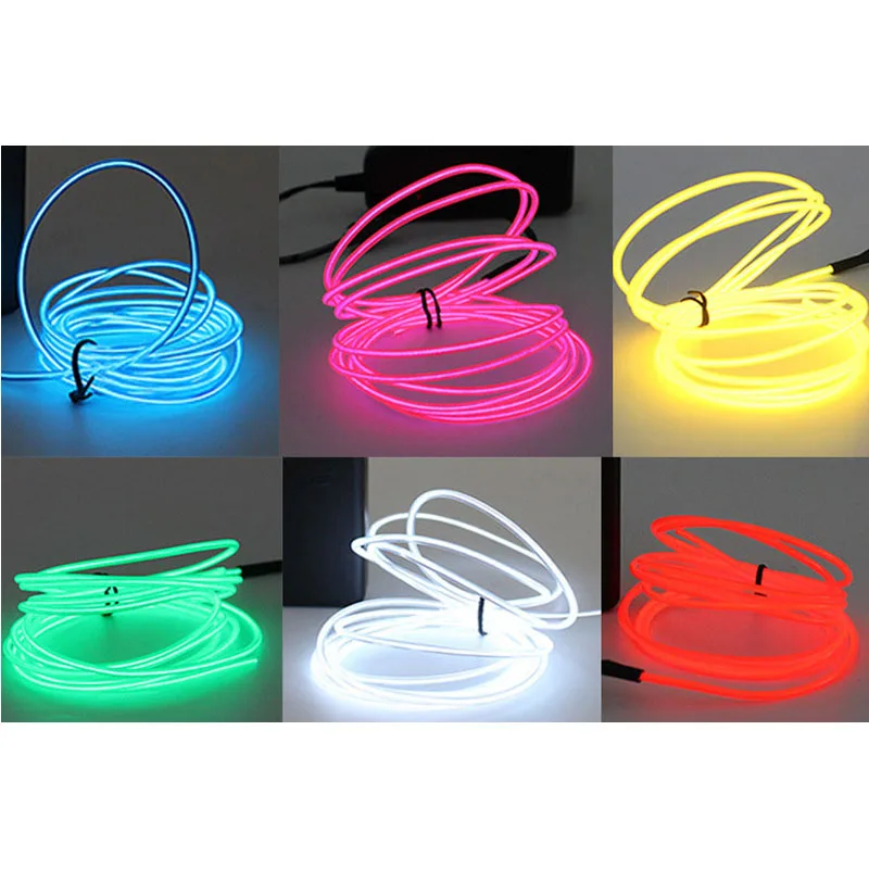 Неоновый светильник с прошитыми краями, светодиодная лента для танцевальной вечеринки, Декор, автомобильный светильник, светодиодная лампа, гибкая веревка, трубка, лента, 2 м, аксессуары для вечеринки