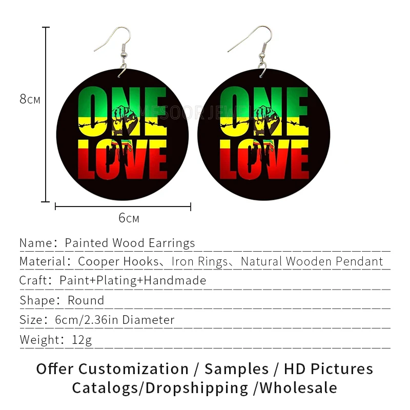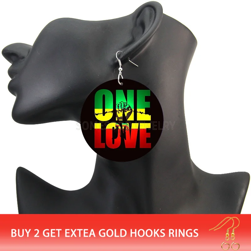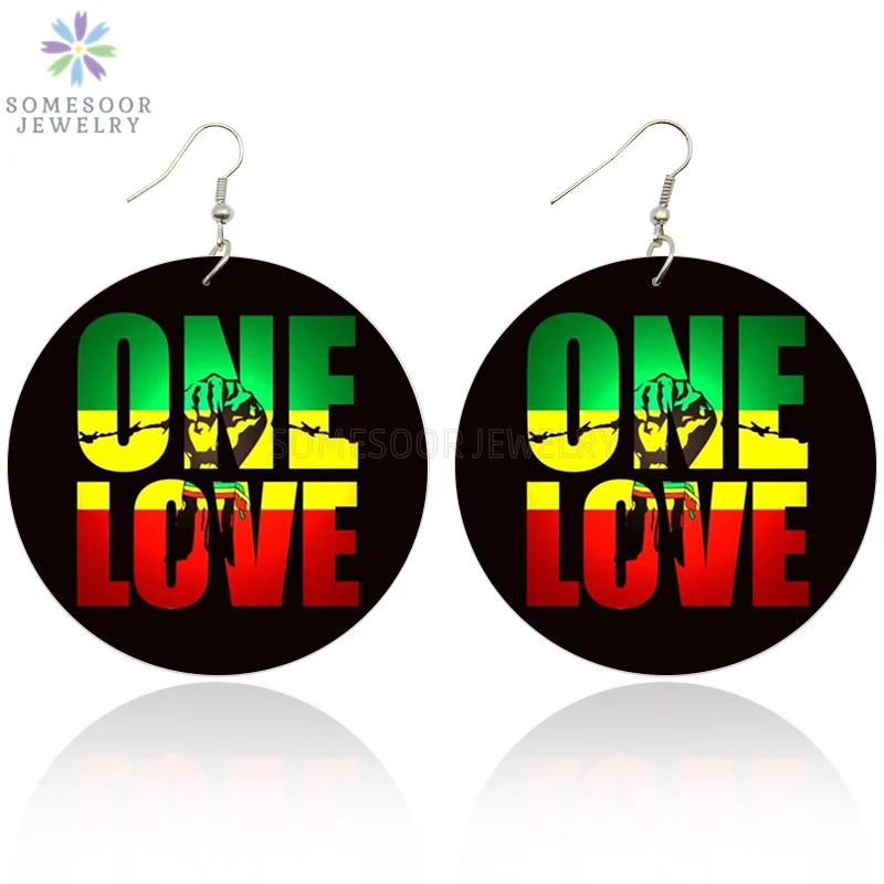 SOMESOOR двухсторонние печатные объединенные африканские цвета деревянные серьги-капли ONE LOVE сила, кулак черные Висячие ювелирные изделия для женщин