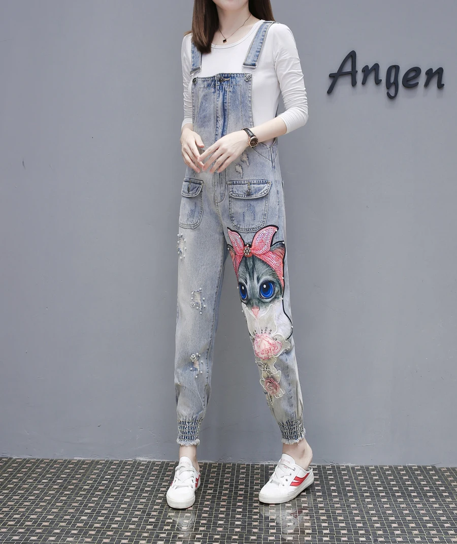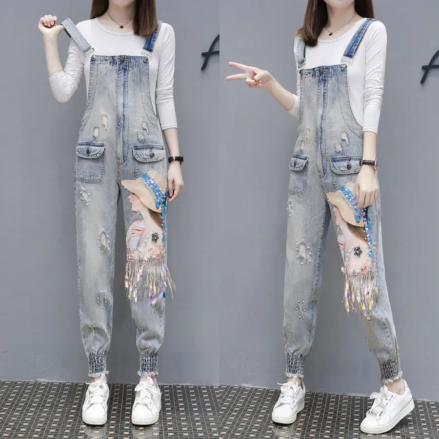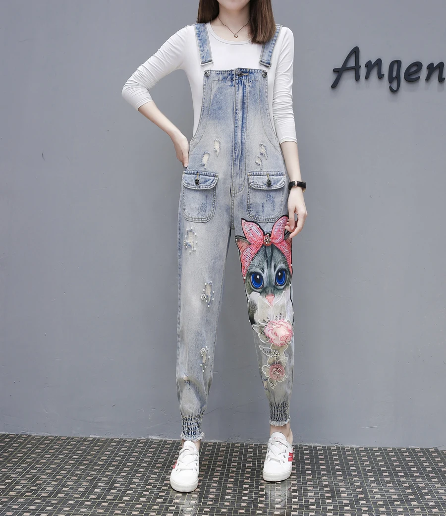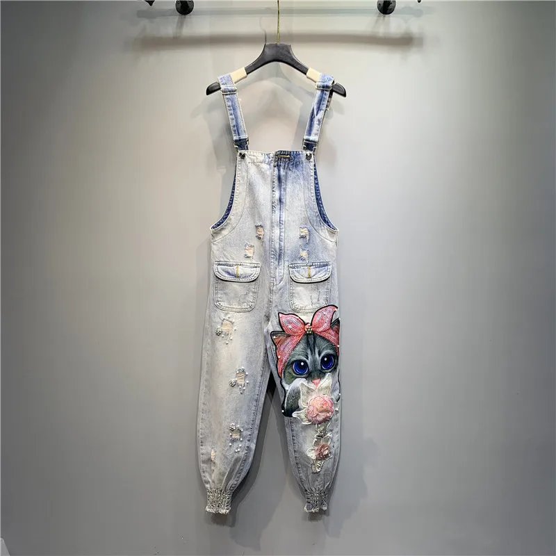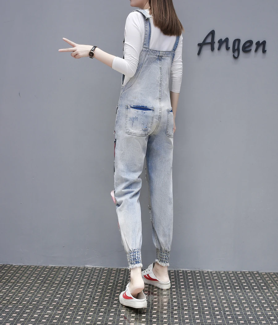 Комбинезон MUMUZI джинсовый с вышивкой бисером и блестками