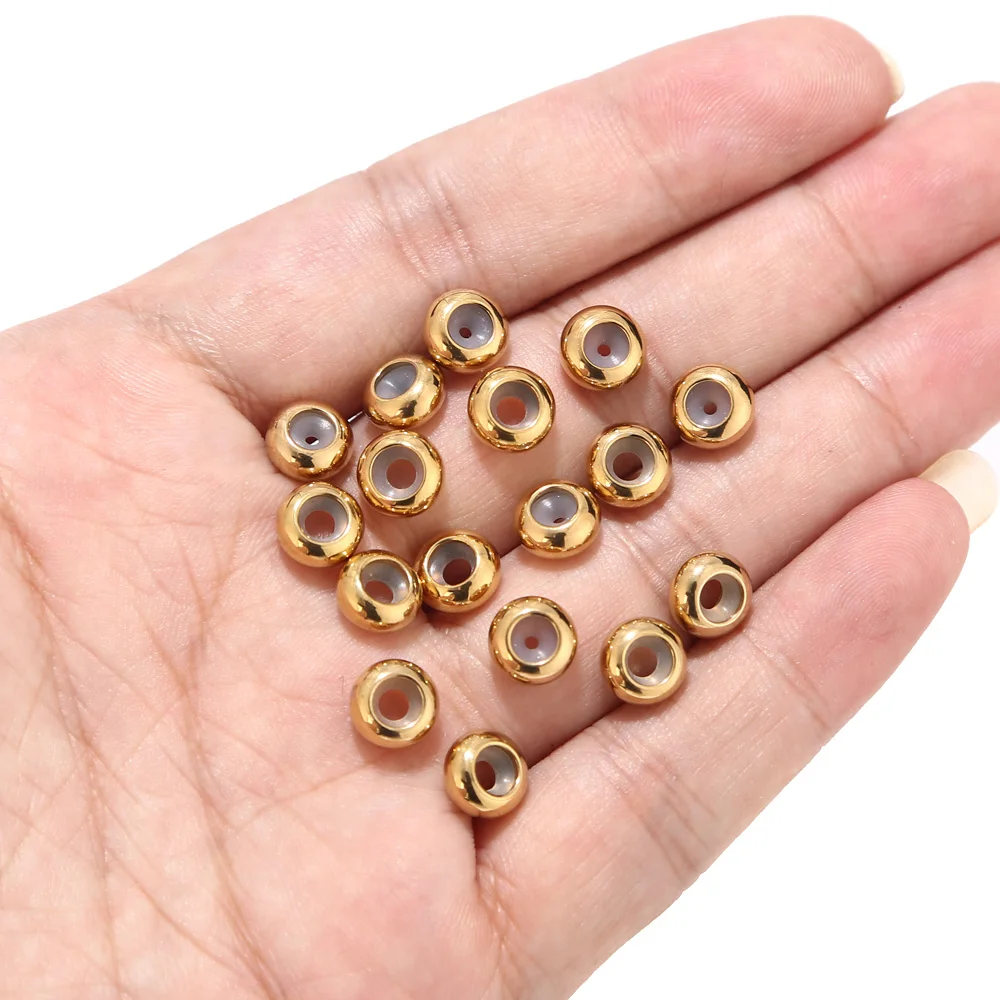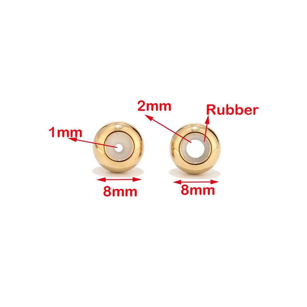Золотистые разделительные бусины из нержавеющей стали, 10 шт., 8 мм, резиновые разделительные бусины для браслетов DIY, фурнитура для ювелирных изделий