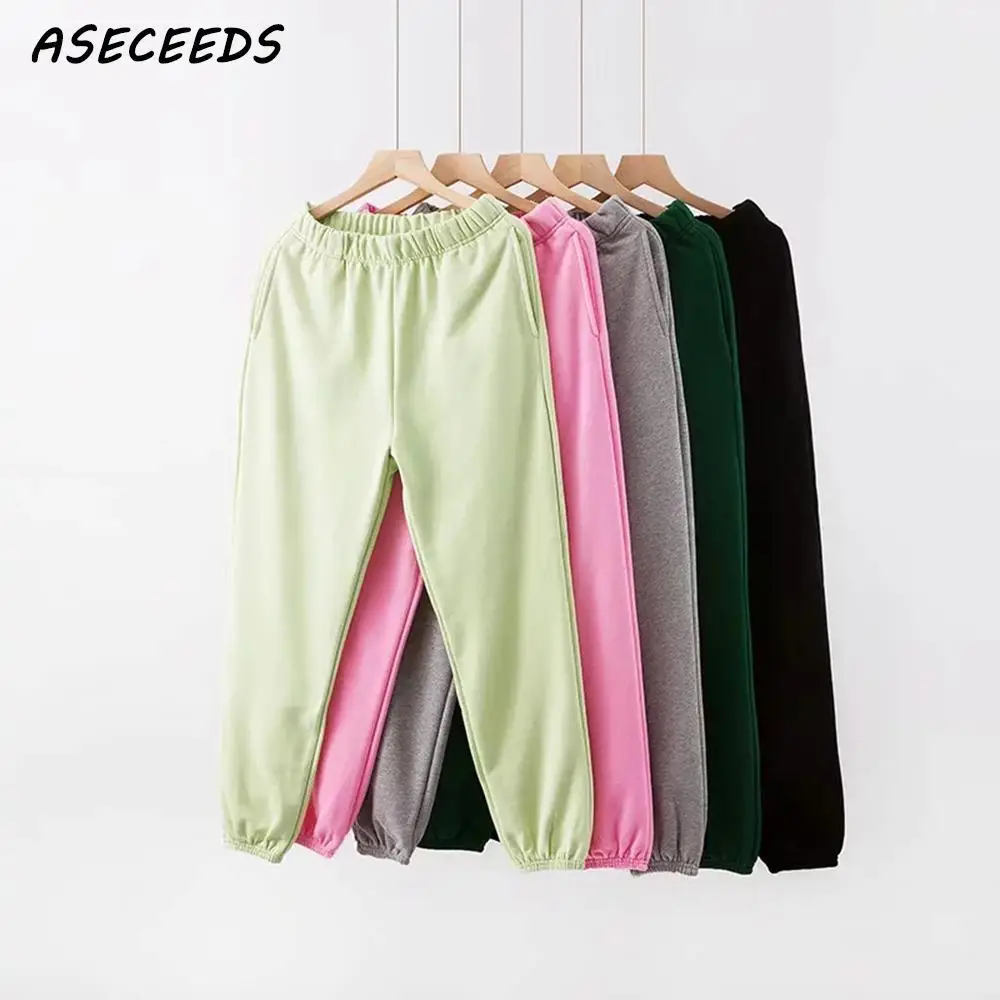 Брюки женские хлопковые с карманами, джоггеры с эластичным завышенным поясом, черные спортивные штаны-карандаш в Корейском стиле, уличная одежда, осень 2021