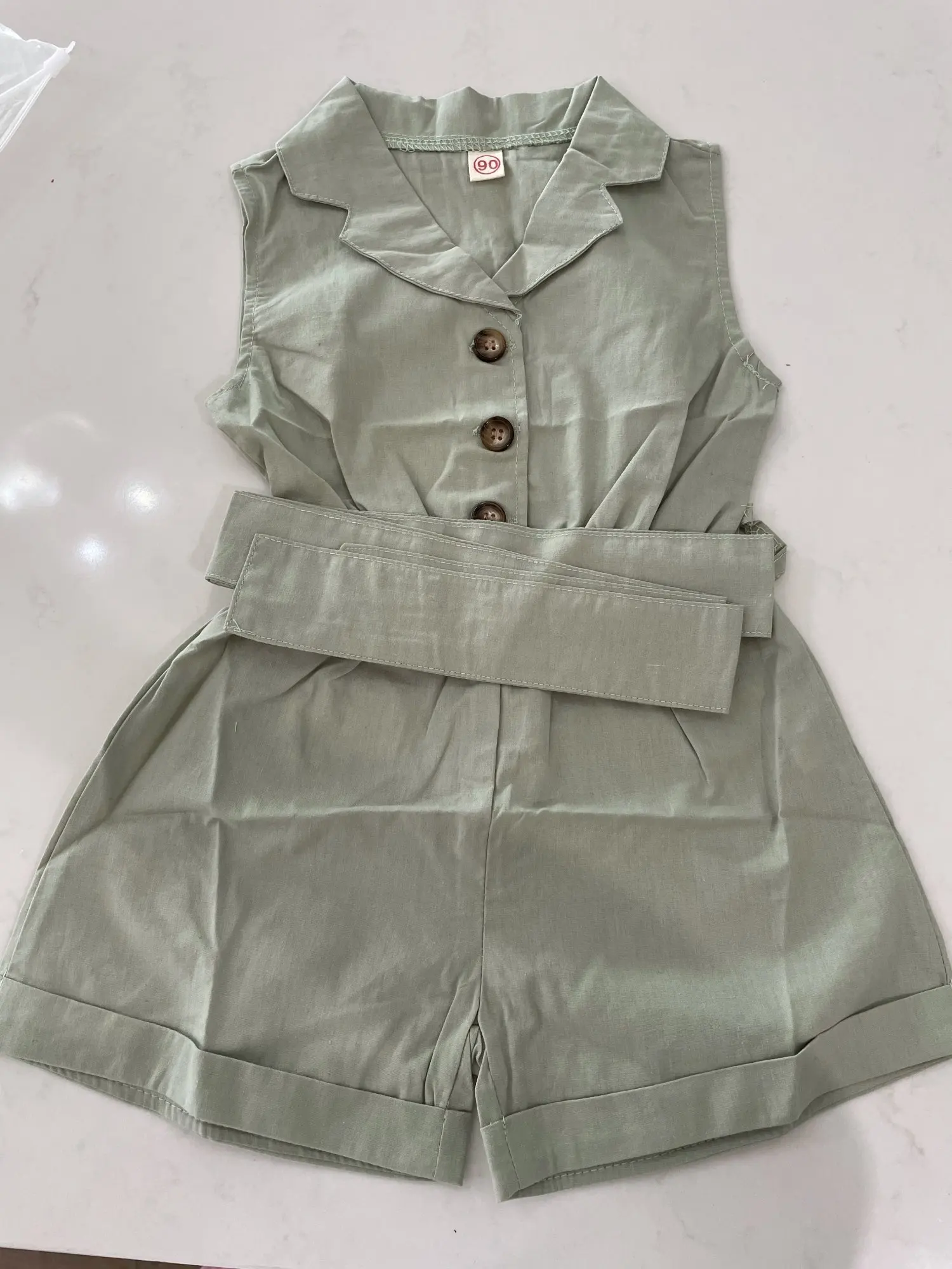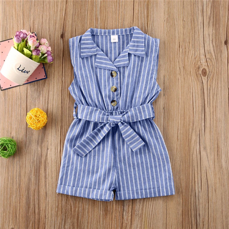 Комбинезон детский, без рукавов, с отложным воротником, однотонный, От 1 до 6 лет