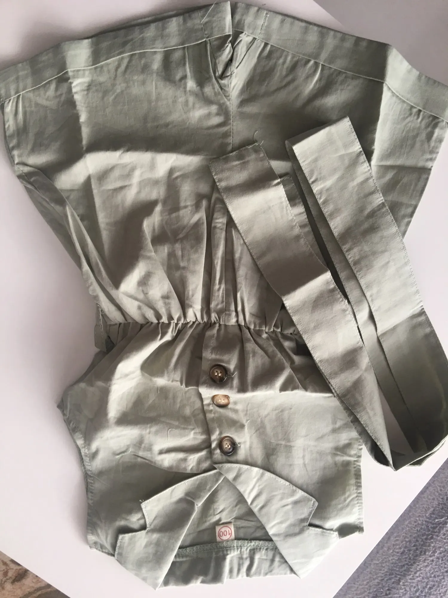 Igual a la foto. Muy bonito y la tela es fina, perfecto para el verano. He pedido una talla 100 y para mi hija de 23 meses es un poco justa, aconsejo pedir una talla más de la que se gasta.