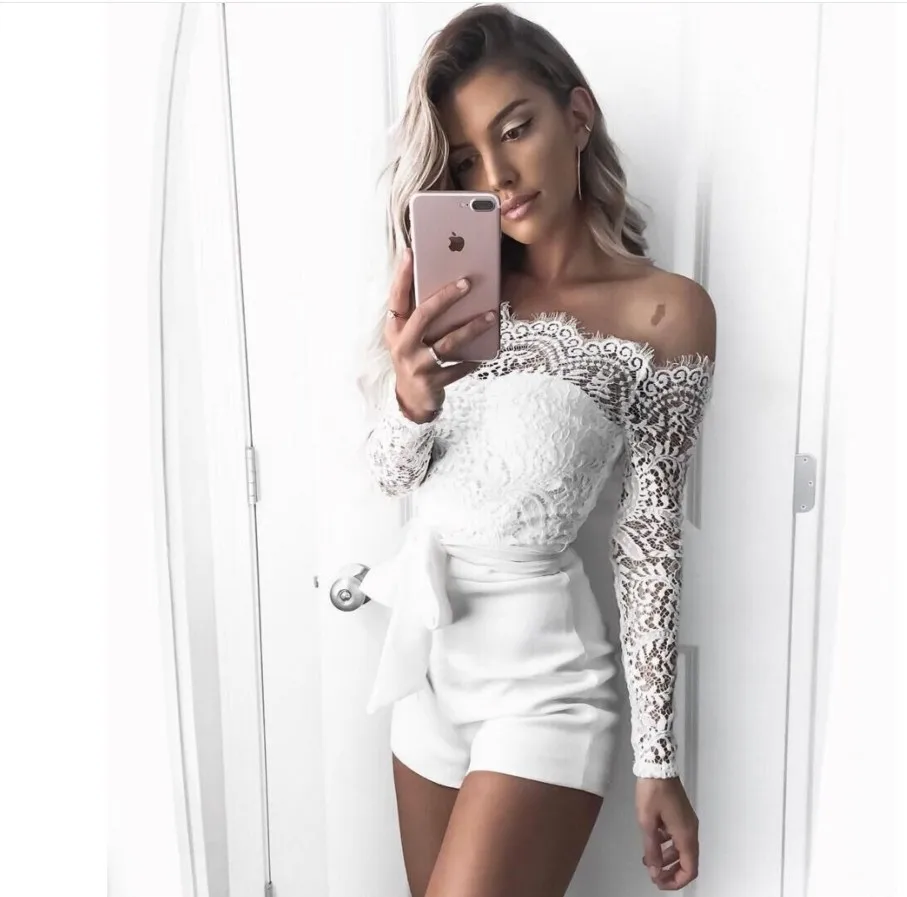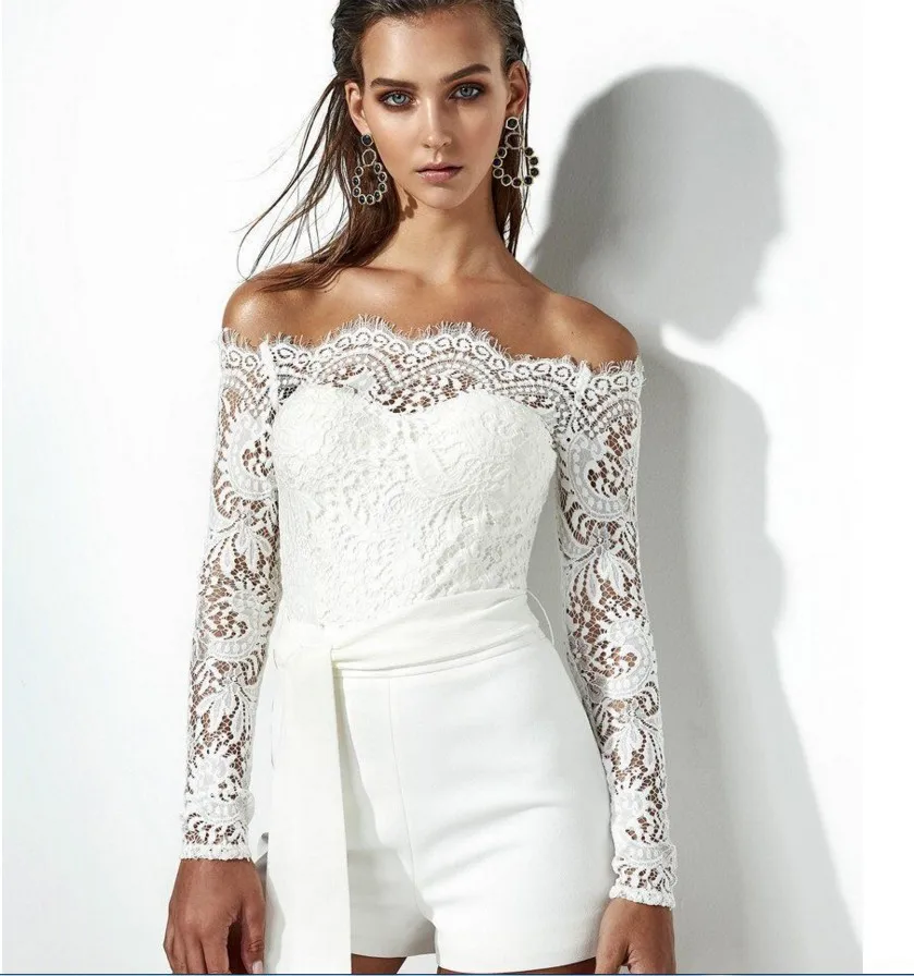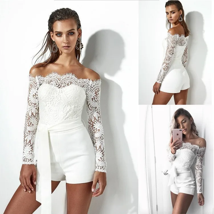 Сексуальный кружевной женский Облегающий комбинезон с ресничками, комбинезон с открытыми плечами, прозрачный сетчатый Облегающий комбинезон, белый шифоновый комбинезон на шнуровке