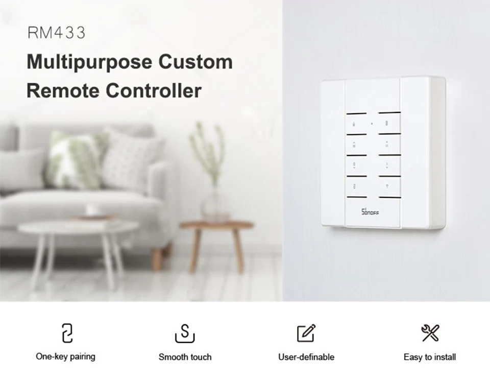 Пульт дистанционного управления SONOFF RM433 с 8 клавишами, 433 МГц, работает с SONOFF RF/Slampher/4CH Pro/TX Series/RF Bridge