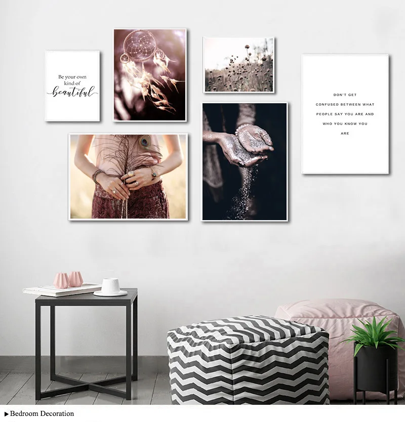 Холдинг рука красота цитаты Мода девушка Постер Черный Whtie холст ...