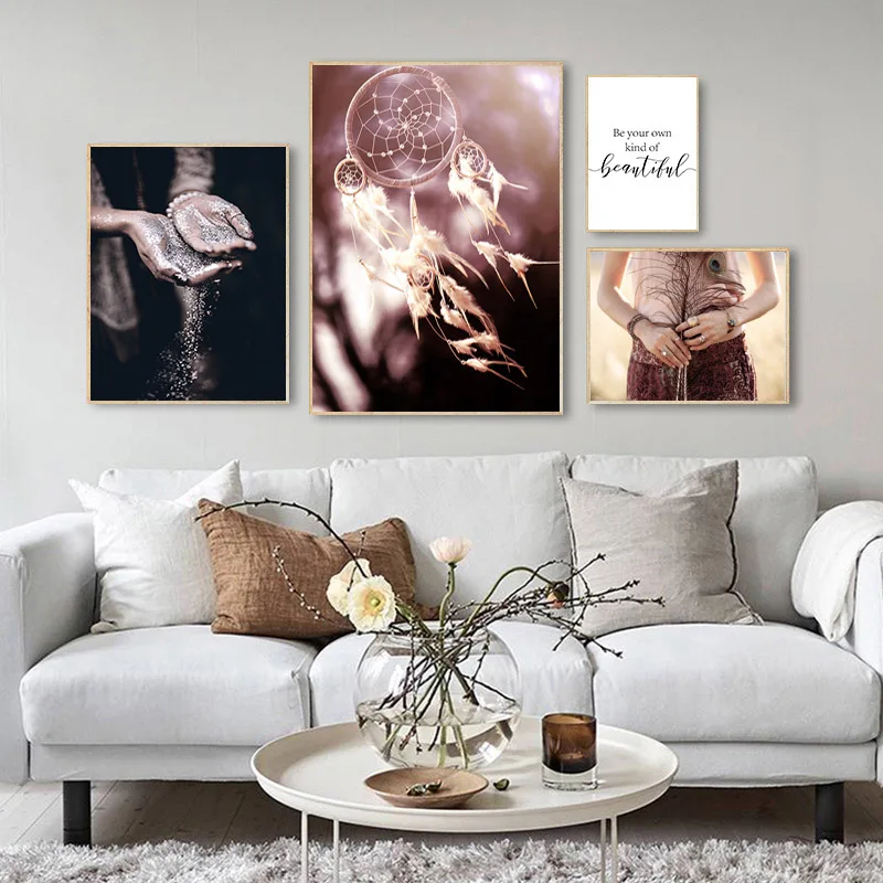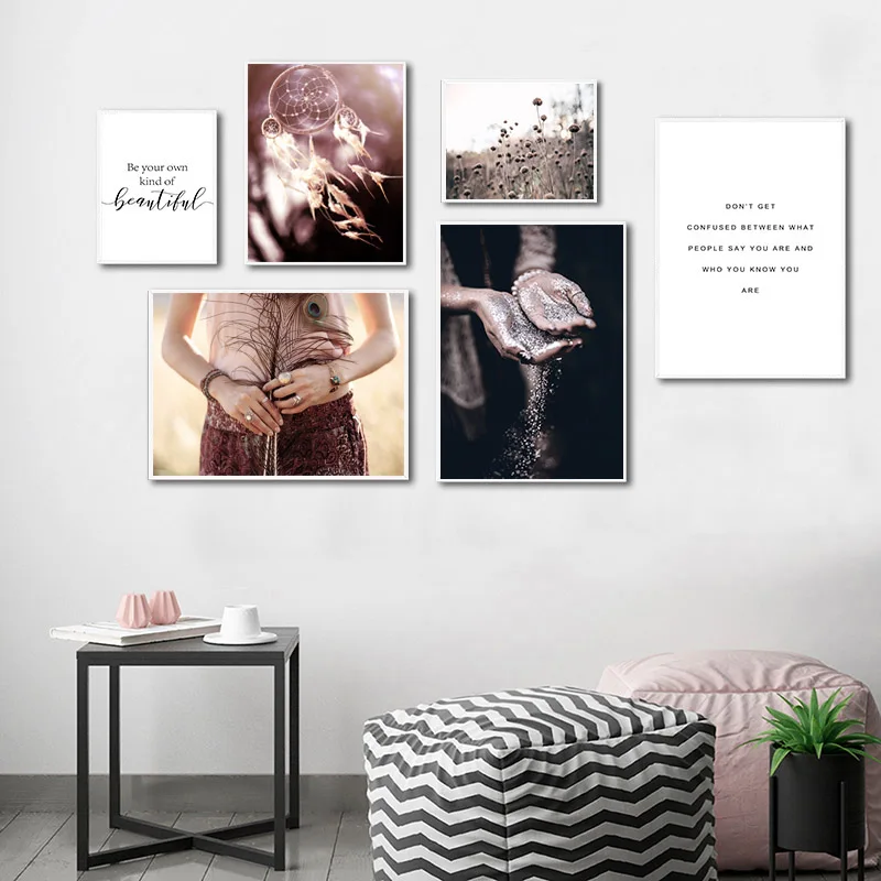 Абстрактная перьевая Женская Картина на холсте, современные настенн...