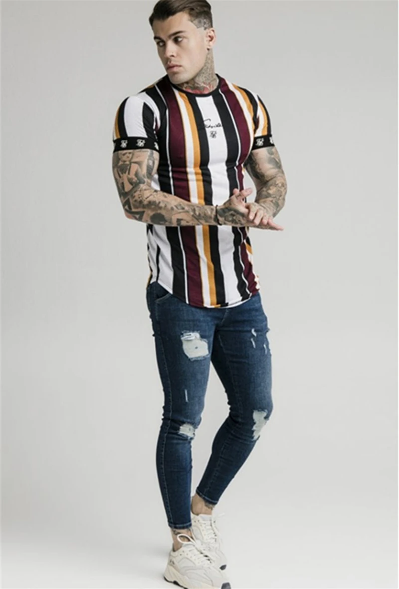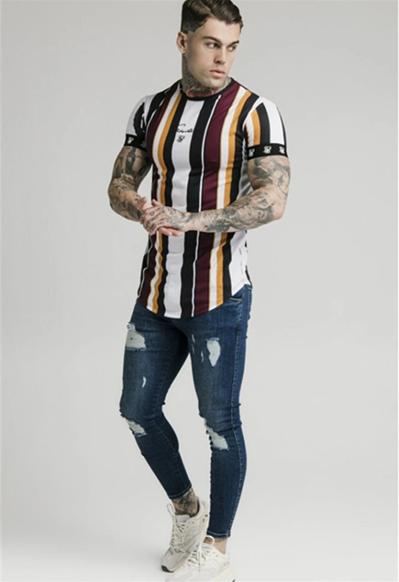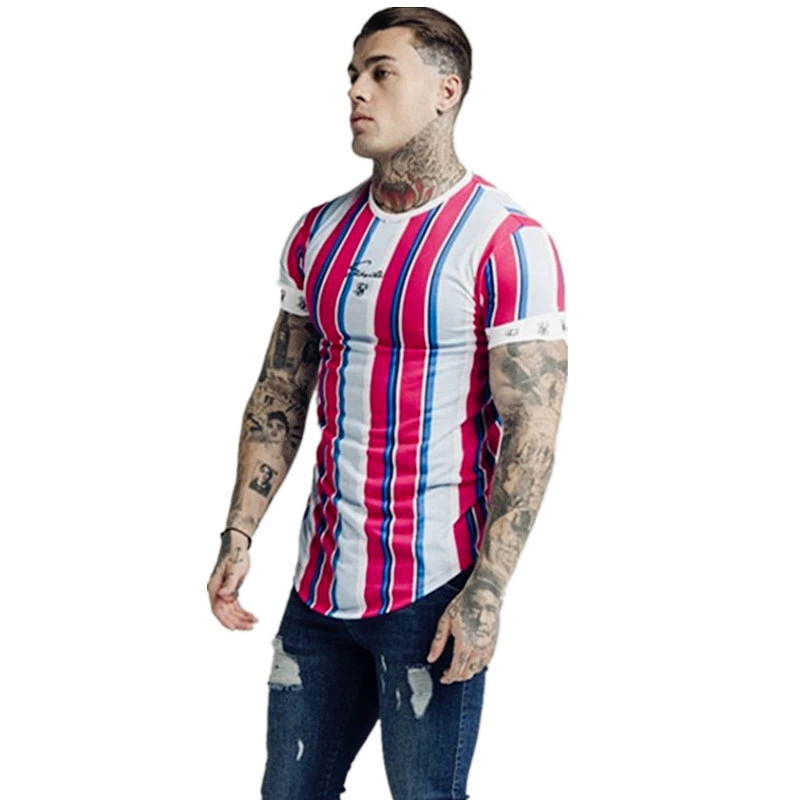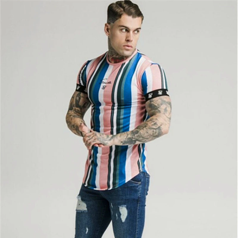 Футболка мужская с коротким рукавом, модная облегающая быстросохнущая рубашка для бега, тренажерного зала, фитнеса, в полоску, на лето