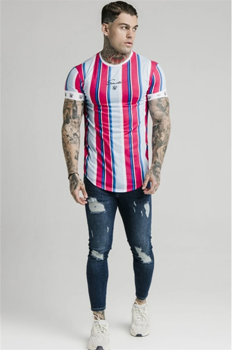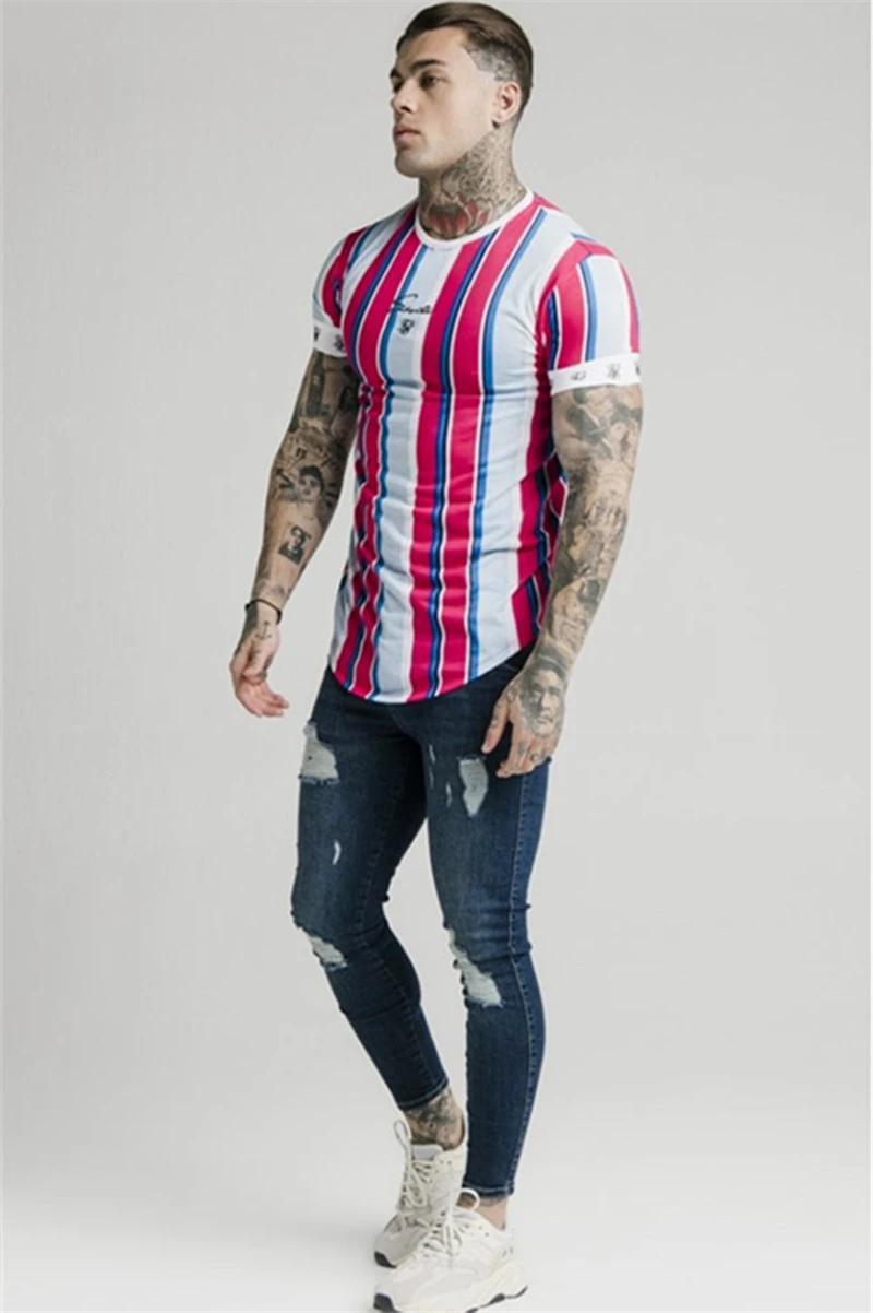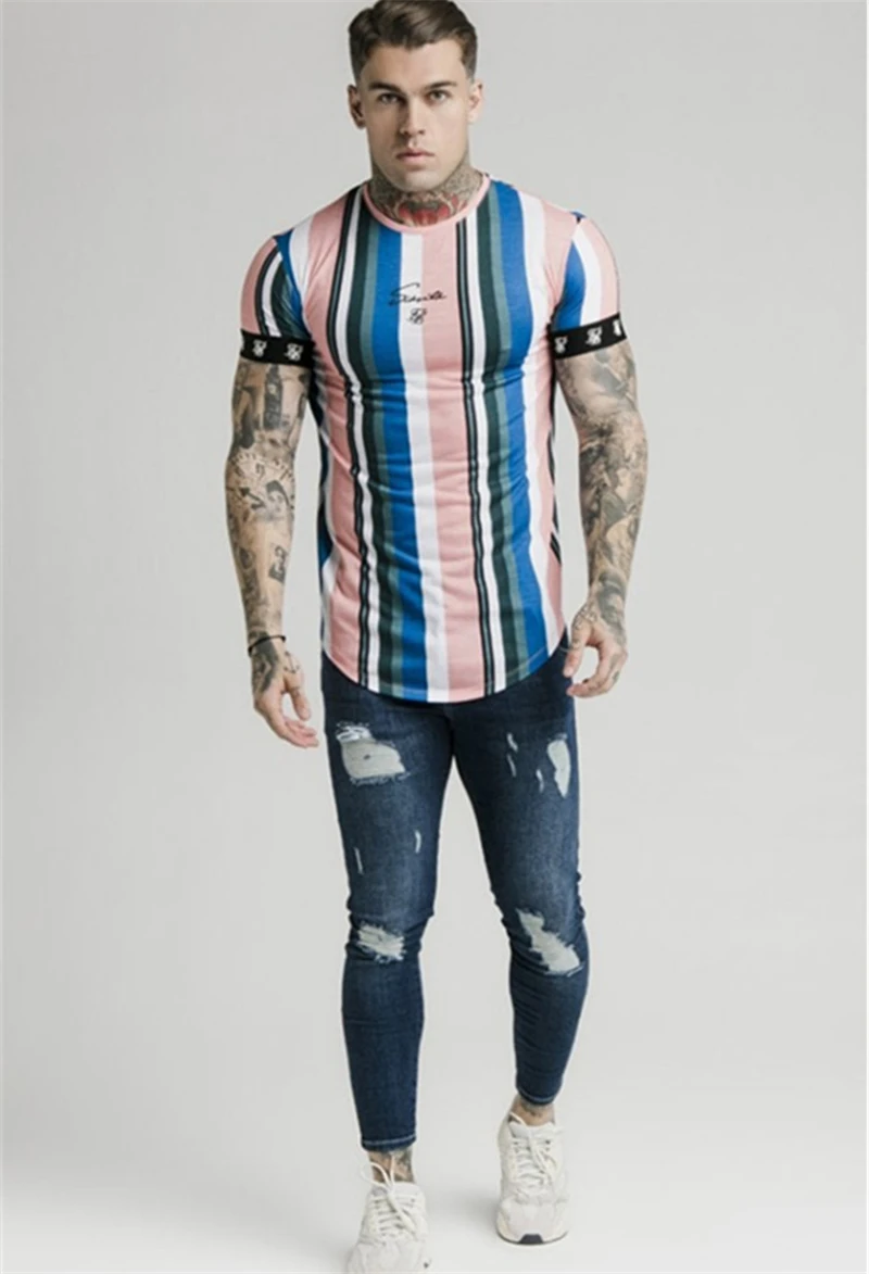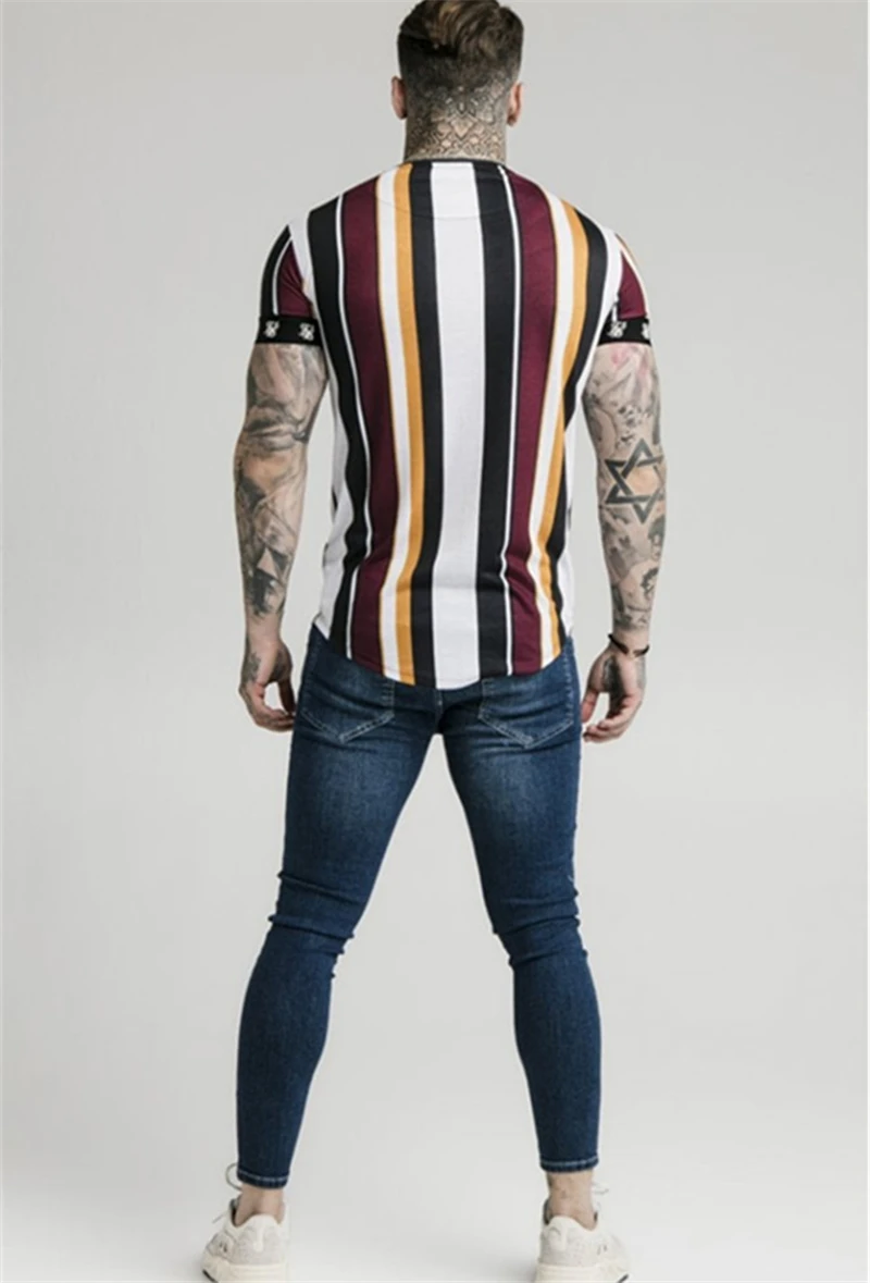 Футболка мужская с коротким рукавом, модная облегающая быстросохнущая рубашка для бега, тренажерного зала, фитнеса, в полоску, на лето