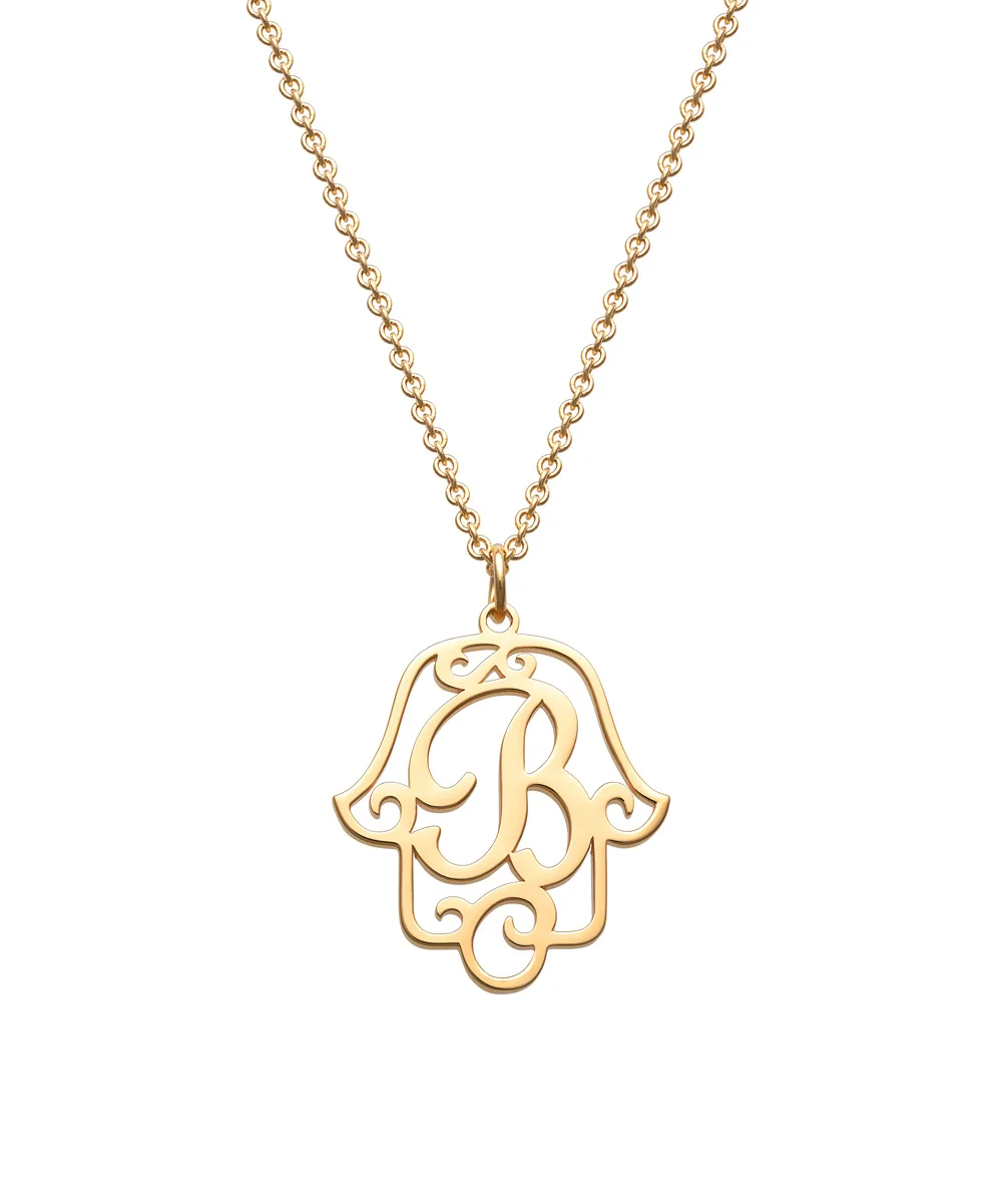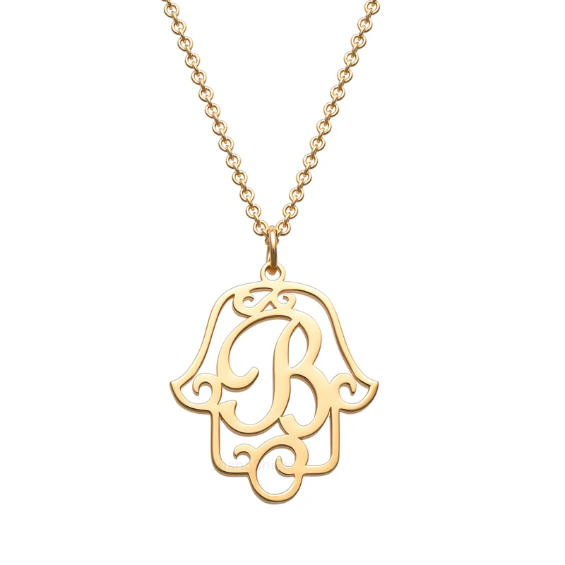 Нержавеющая сталь имя ожерелье Алфавит ожерелье Боком первая подвеска с амулетом Хамса ожерелье FSN0034