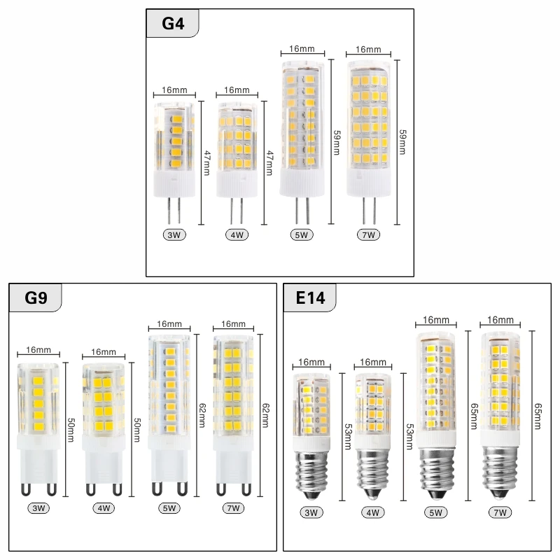 Светодиодсветильник лампа G9 G4, 3 Вт, 4 Вт, 5 Вт, 7 Вт, E14, светодиодная лампа переменного тока 220 В, светодиодная лампа-кукуруза SMD2835 360, угол луча, сменная галогеновая лампа 30 Вт, 40 Вт, 60 Вт