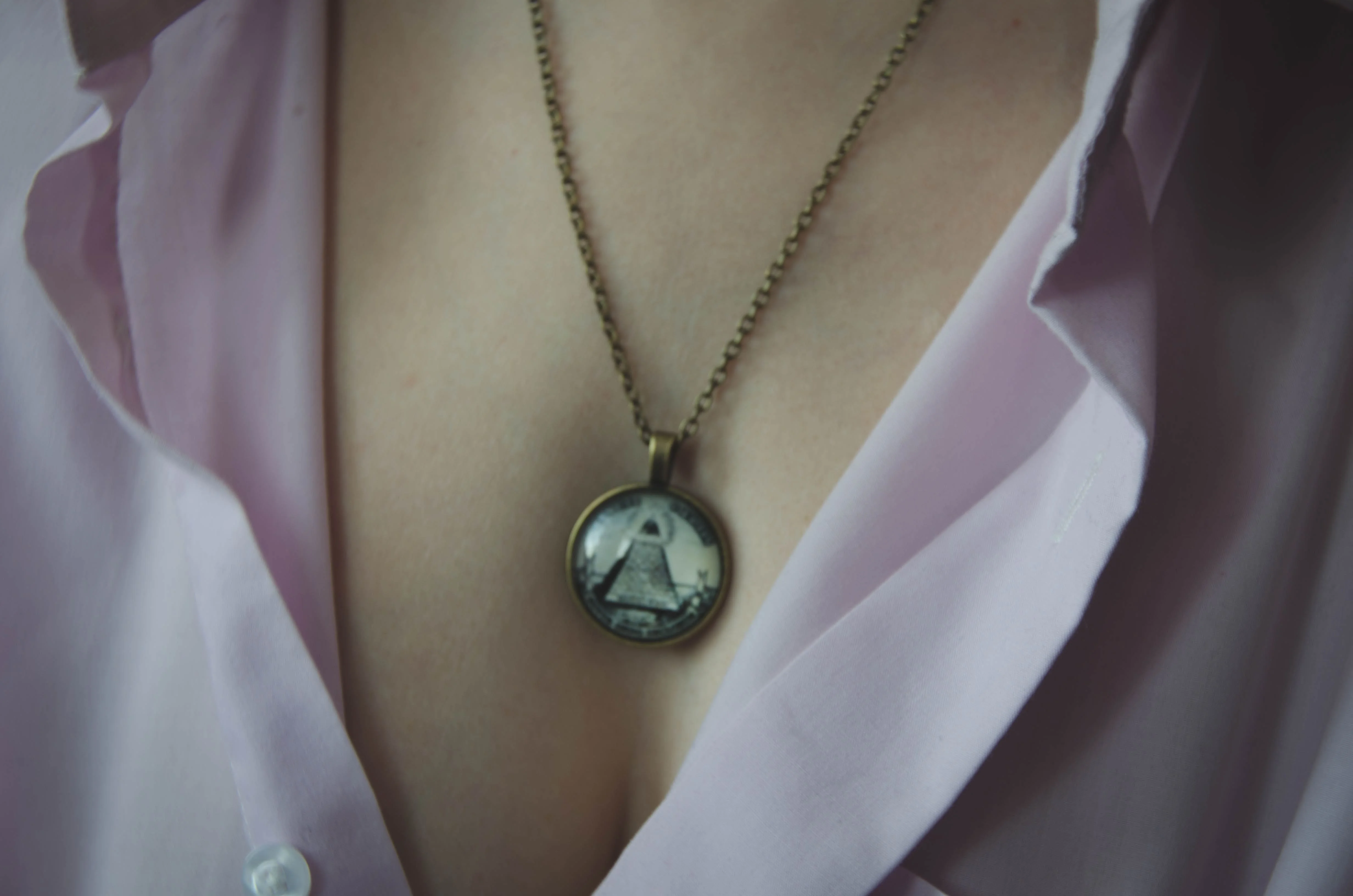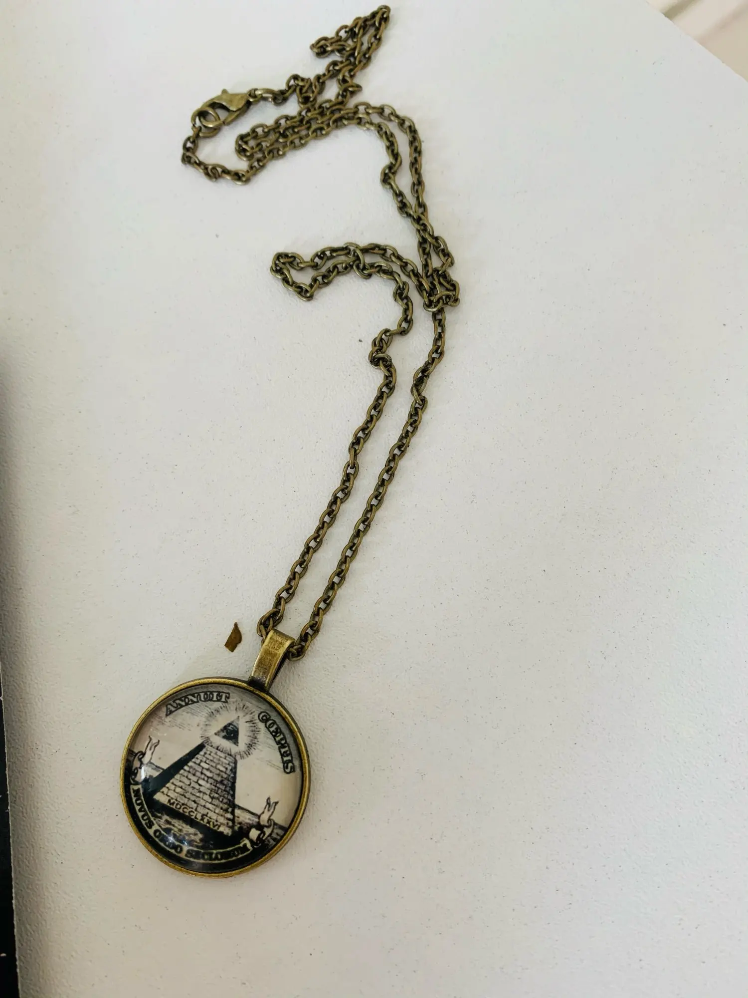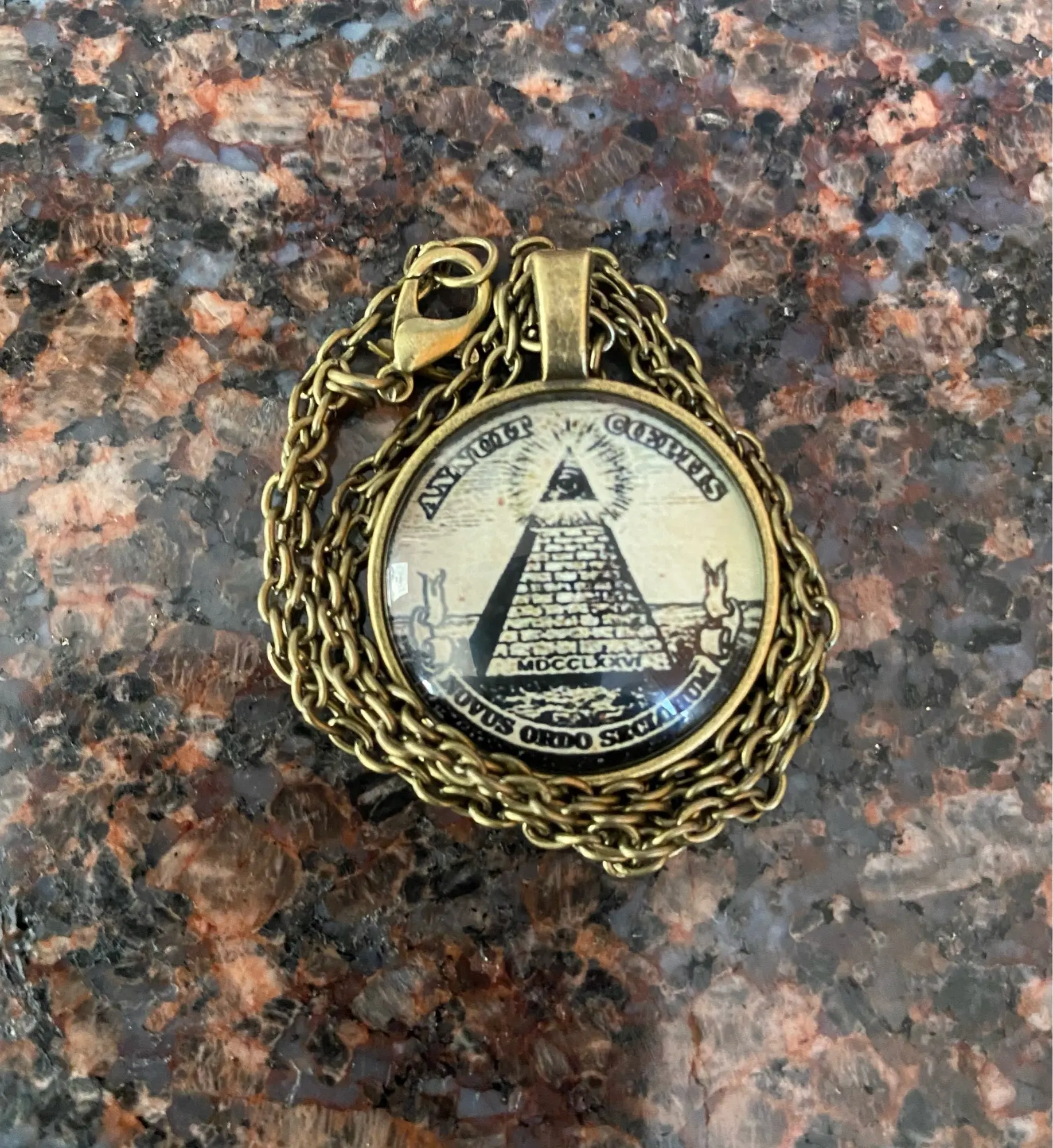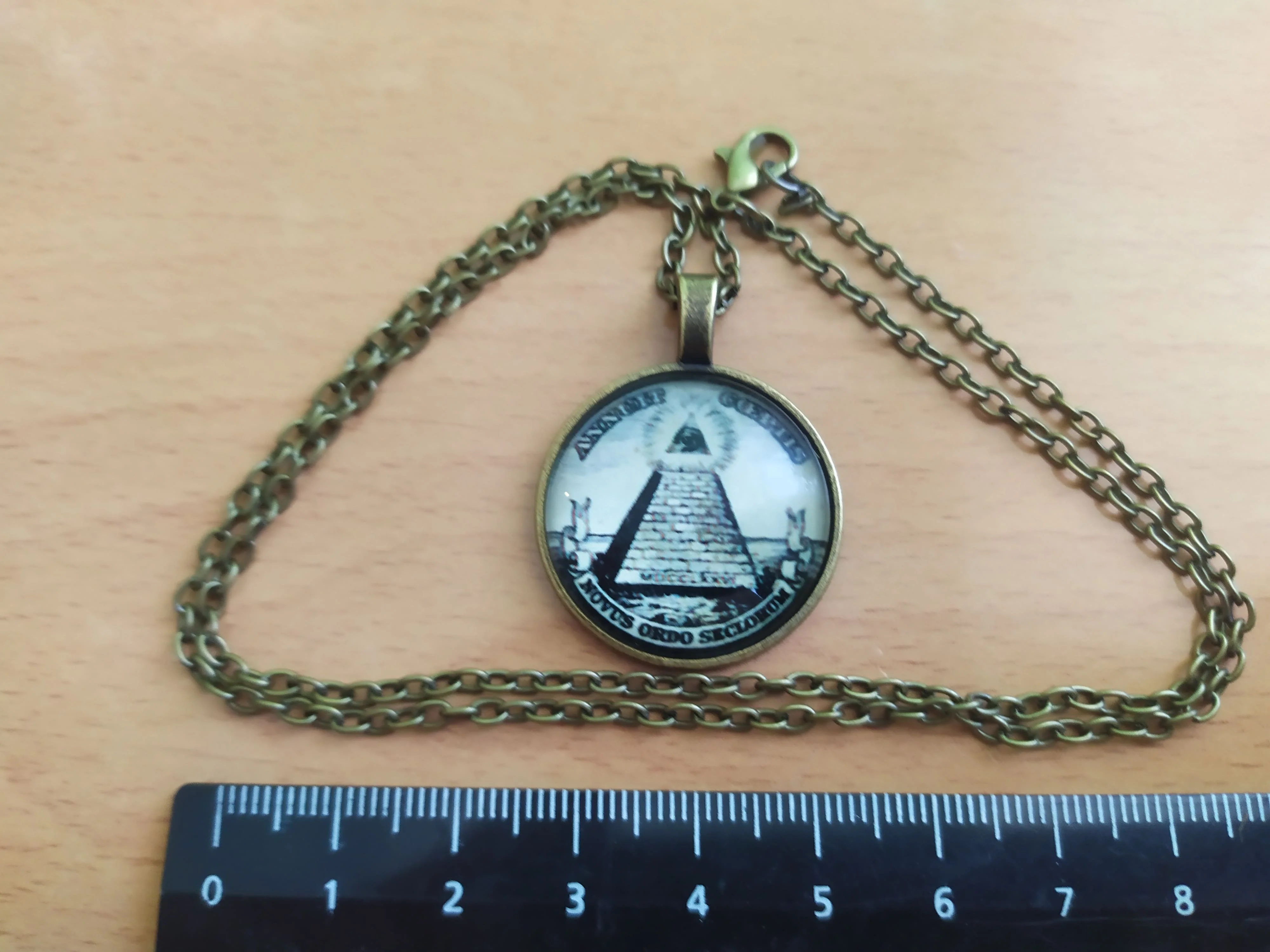 Ожерелье со стеклянным кулоном, с символом под старину, масонов Иллюминаты