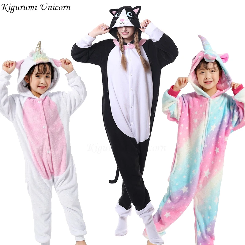 Детская Пижама для взрослых с единорогом, зимний фланелевый Пижамный костюм с котом и пандой для мальчиков и девочек, 2019