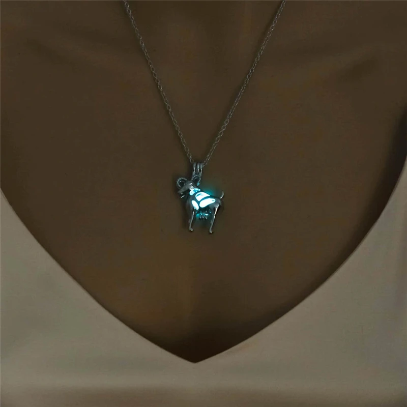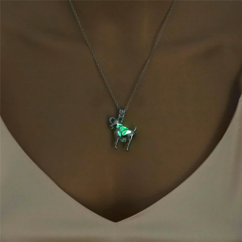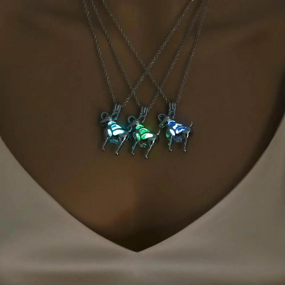 Милая собака, модное серебряное ожерелье с подвеской, светящаяся це...