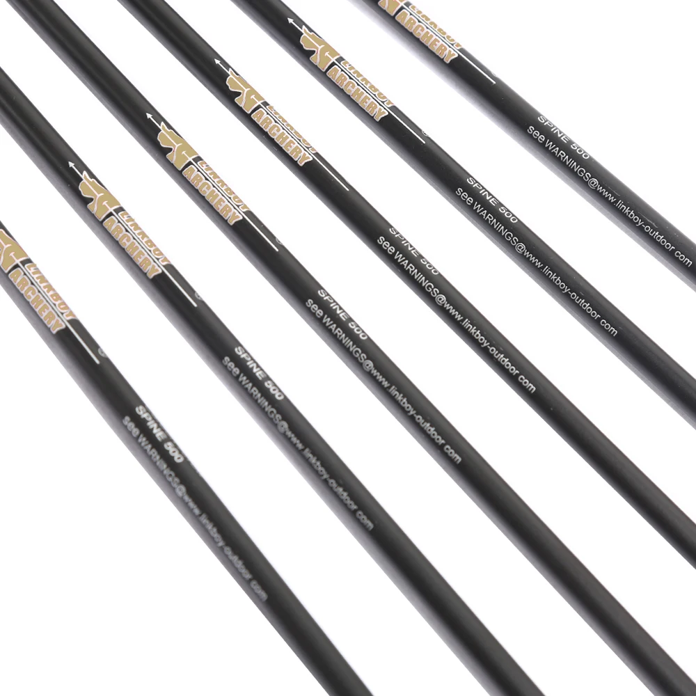 Стрелы Linkboy из чистого карбона для стрельбы из лука, стержень 300 340 400 500 600 700 ID 800 мм, 12 шт.