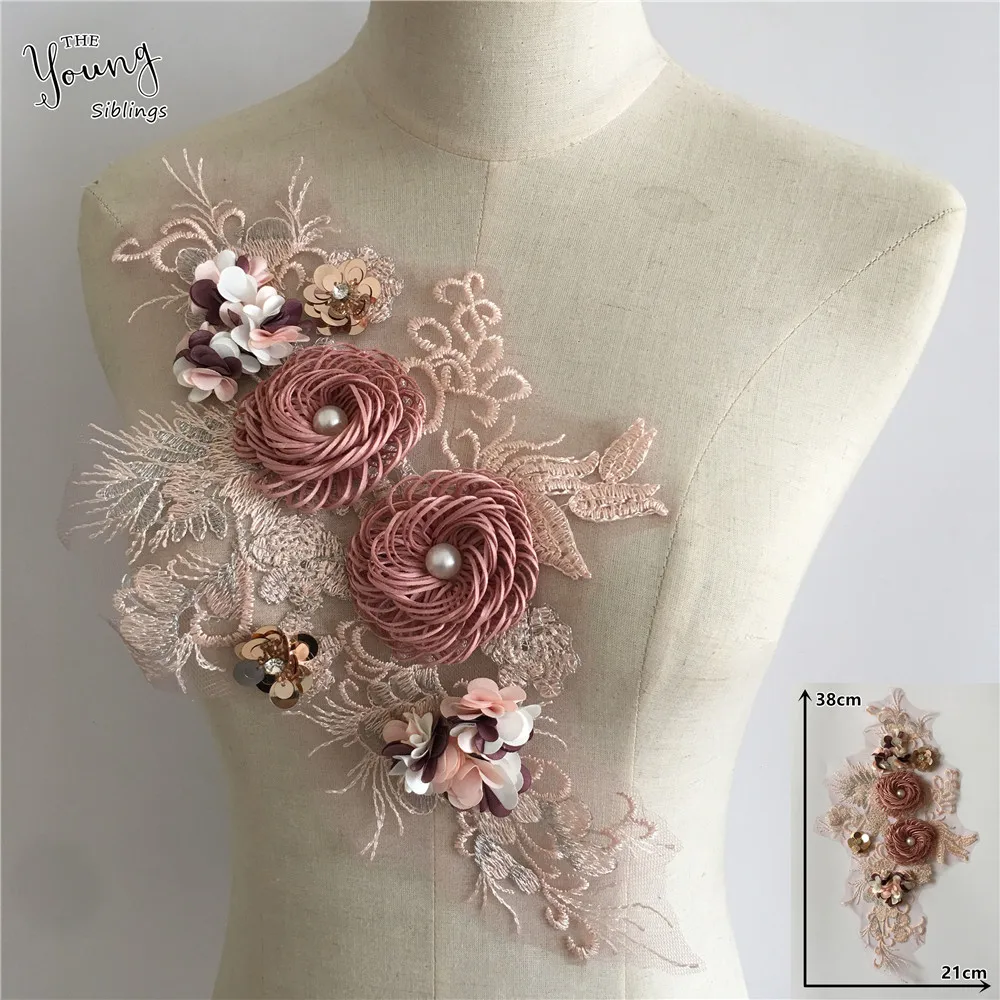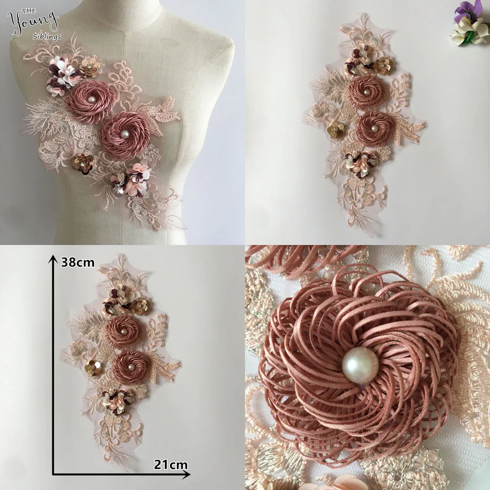 3D трехмерное цветочное украшение, аппликация с жемчужинами и блестками для шитья одежды, товары для рукоделия, аксессуары, 1 шт. для продажи