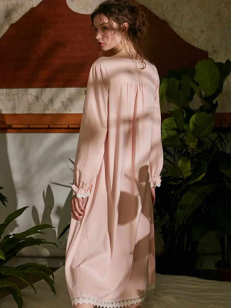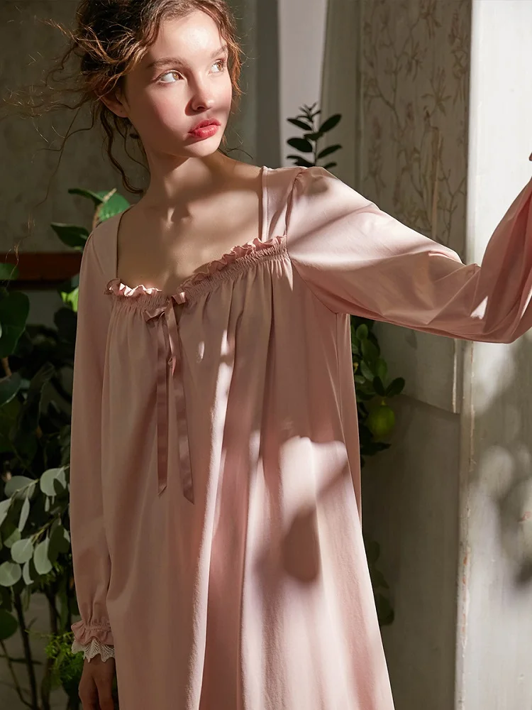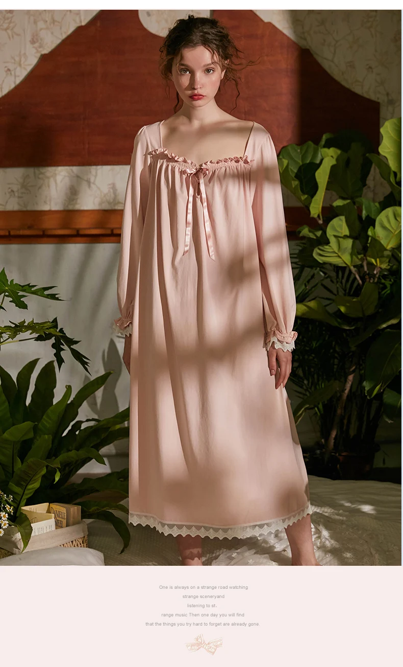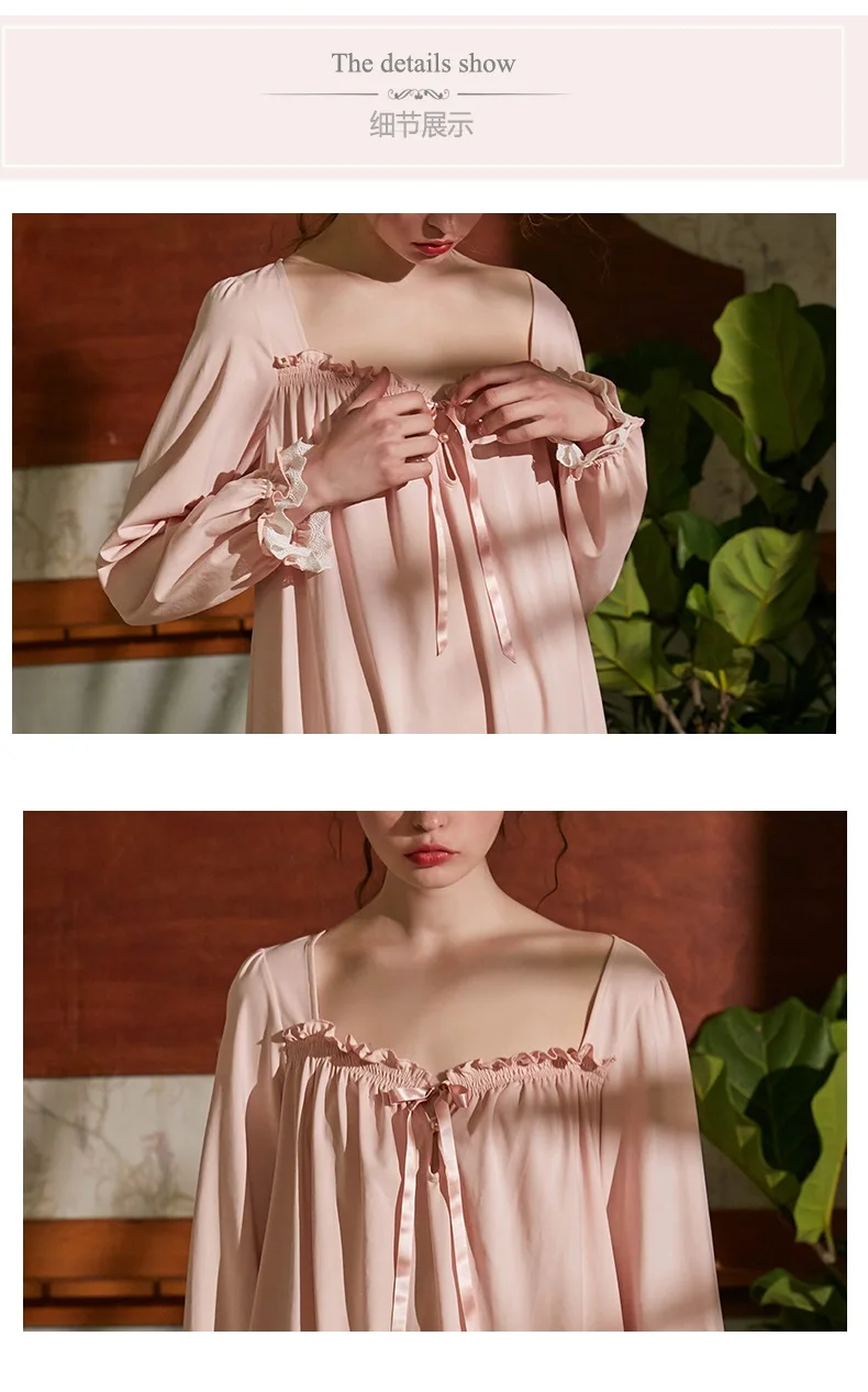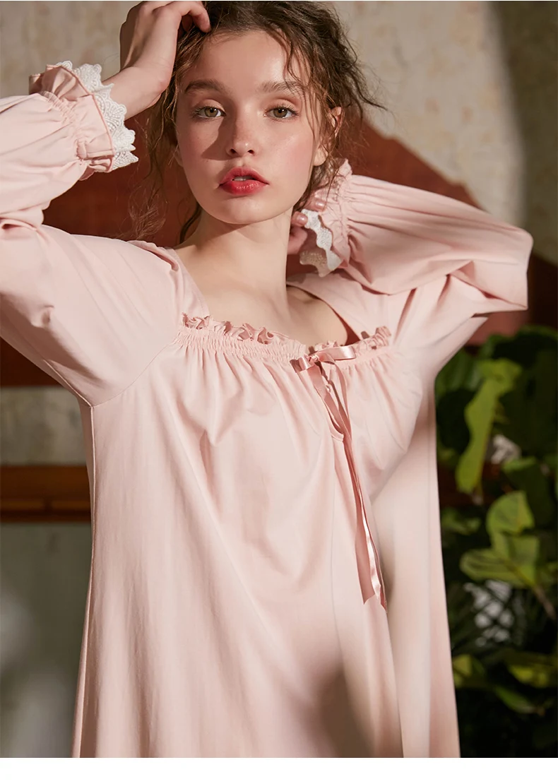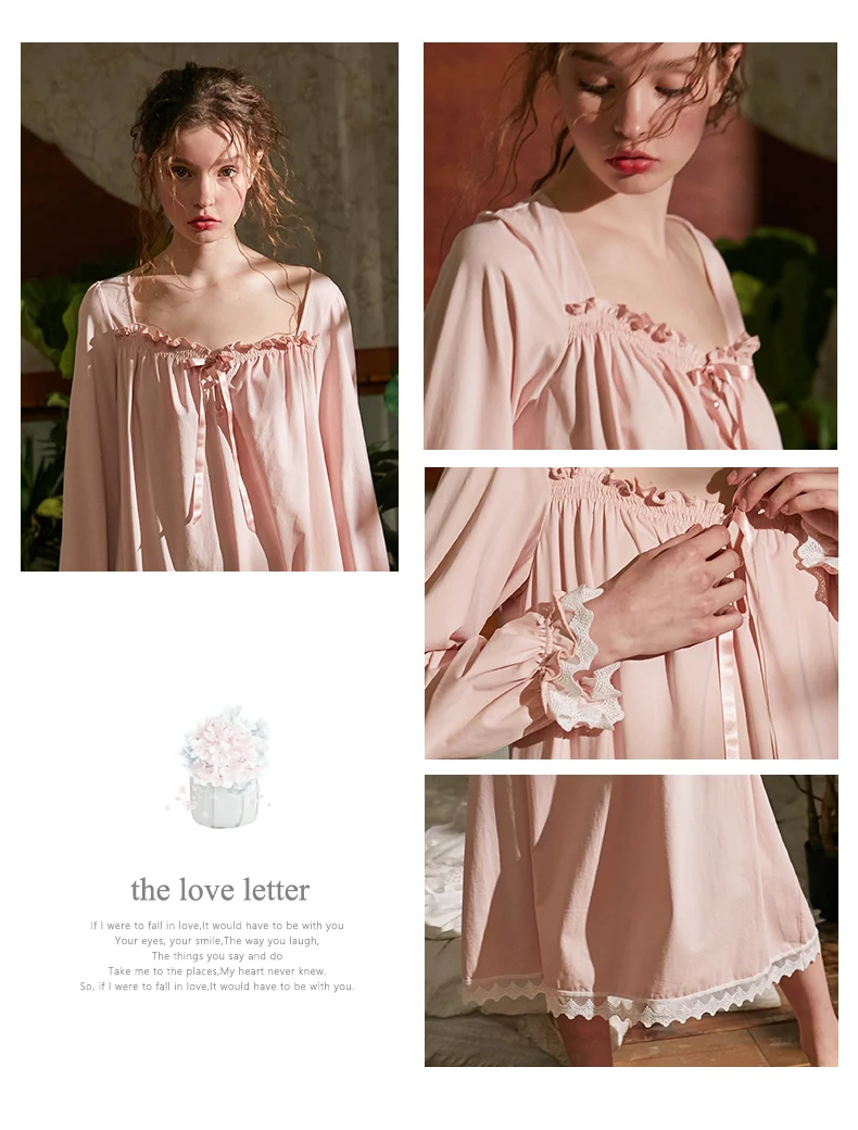 Ночная рубашка Женская длинная хлопковая, винтажная Элегантная ночная рубашка с длинным рукавом, пикантная свободная ночная рубашка принцессы, осень-весна