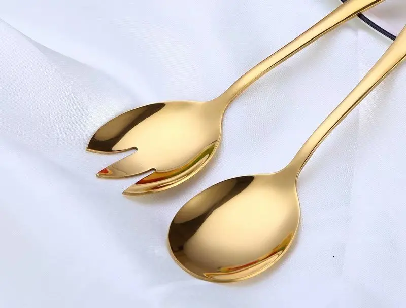 Spklifey Золотая ложка для салата, вилка, 2 шт., набор столовых приборов из нержавеющей стали Сервировочный набор ложек, красочные уникальные ложки