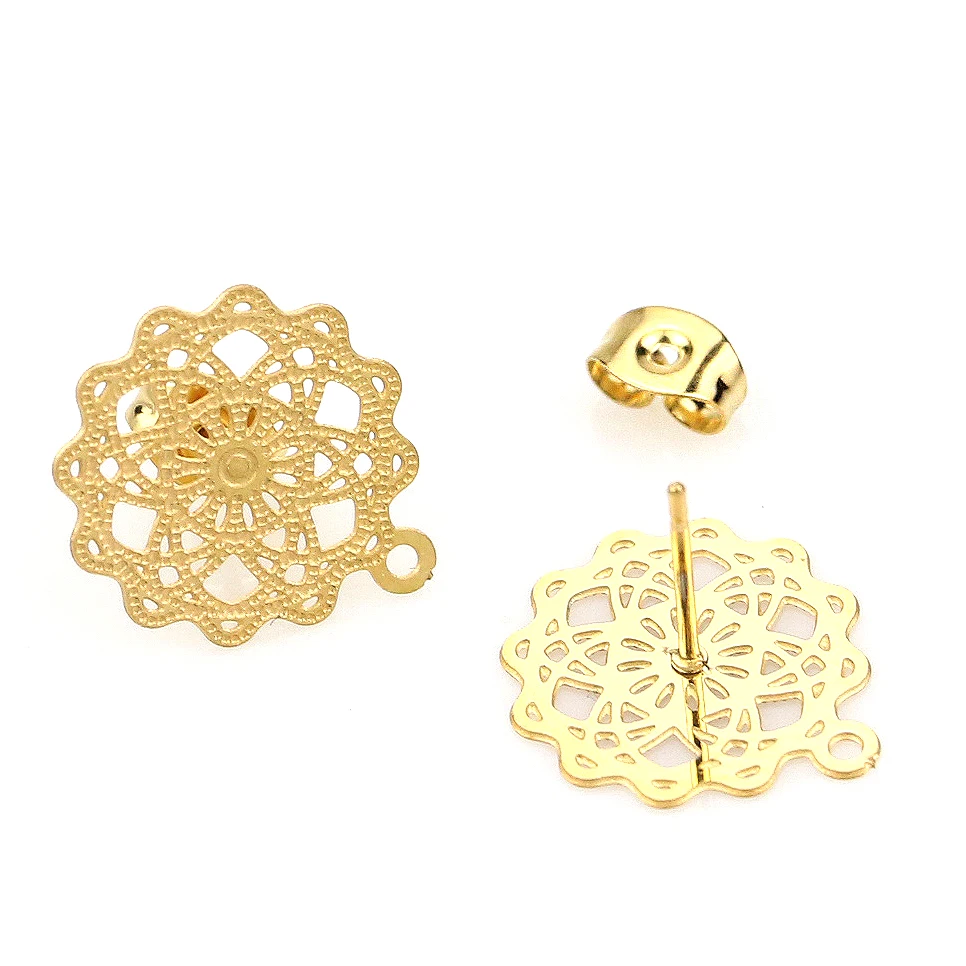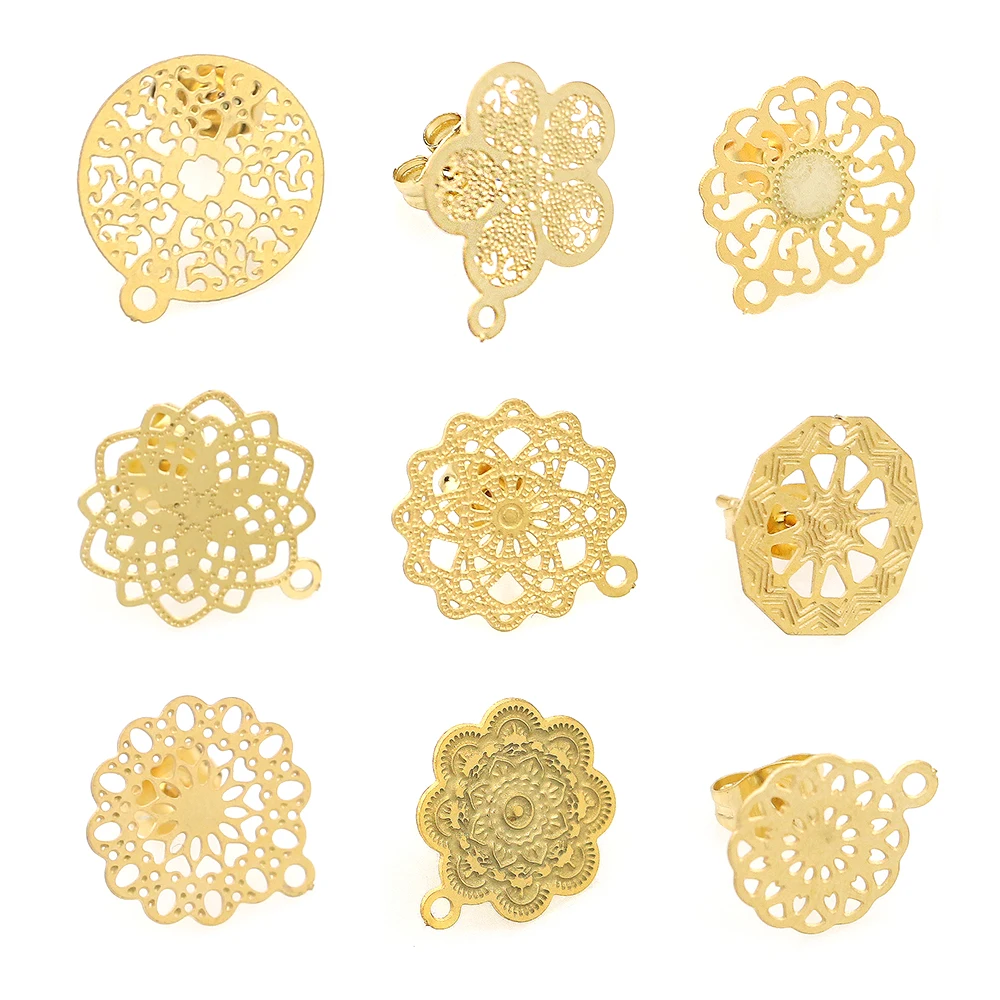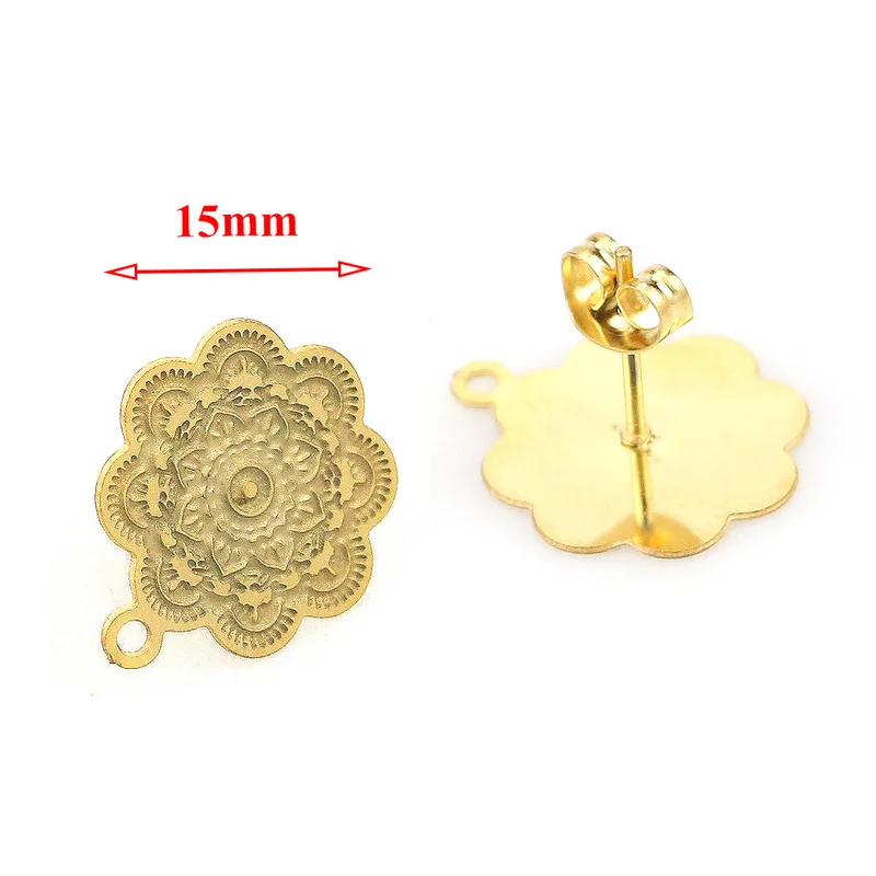 Серьги-гвоздики в богемном стиле сделай сам, открытые ювелирные изделия из нержавеющей стали с цветочным узором в ретро-стиле, комплектующие для базовых украшений