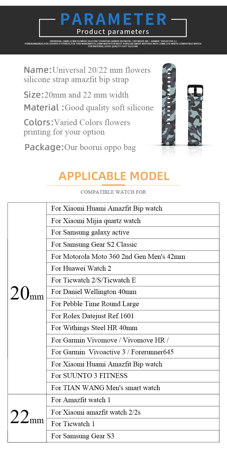 Мягкий силиконовый ремешок BOORUI 20 мм для Xiaomi Huami Amazfit Bip, ремешок для часов