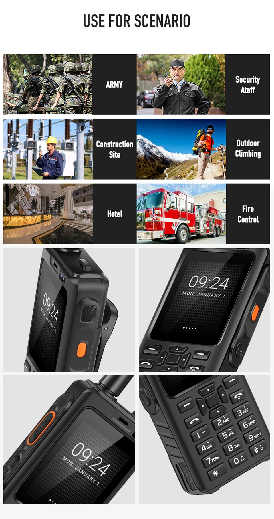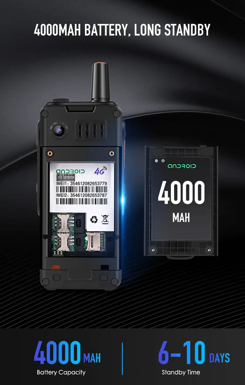 Рация UNIWA F40 Zello, 4G, 4000 мач, водонепроницаемый прочный сенсорный экран 2,4 дюйма, 4 ядра, Android 4G смартфон
