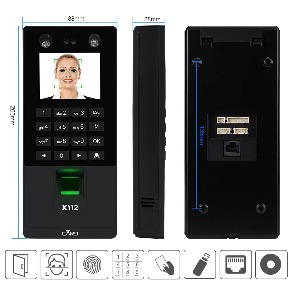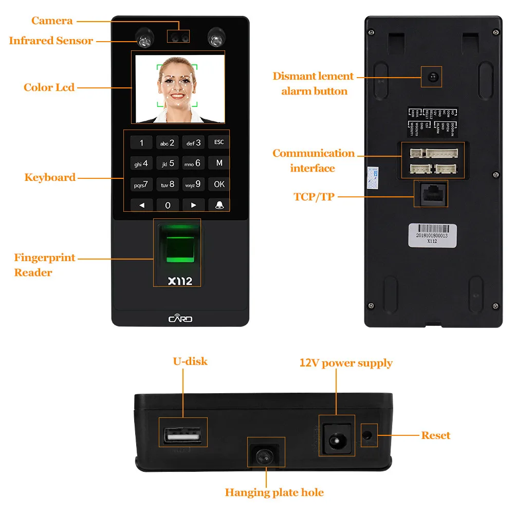 1. 2,8 дюймовый TFT цветной экран. 2. Строго следуйте стандарту продукта национальной безопасности. 3. Распознавание лица с высоким разрешением инфракрасный светильник ночного видения и профессиональная цветная Двойная камера, терминал может осуществлять быструю проверку в любой среде. 4. Энергосберегающий датчик отпечатков пальцев и функция управления питанием делают продукт идеальным. 5. Поддержка 500 лицевых, 1500 отпечатков пальцев, 500 паролей, 500 шт RFID карты пользовательской емкости, 60000 емкость записи. 6. Поддержка лица, отпечатков пальцев, пароля, RFID карты и различных комбинированных методов, чтобы удовлетворить требования различных пользователей. 7. T9 входной метод редактора, на имя машины, отдел, частоту и другую информацию, может быть непосредственно выводит отчеты о посещаемости, пользовательская операция проста. 8. Поддержка TCP/ IP метода связи. Поддержка USB флеш-накопителя загрузка данных посещаемости. 9. Имеет Wiegand26/34 вход/выход, TTL вход/выход, релейный выход, дверной звонок. 10. Гуманное напоминание о языке. 11. Поддержка китайского языка, традиционного китайского, английского, испанского, корейского, японского, турецкого, индонезийского, итальянского, тайского. 12. Подходит для входов и выходов в офис, фабрику, отель, школу и т. д.