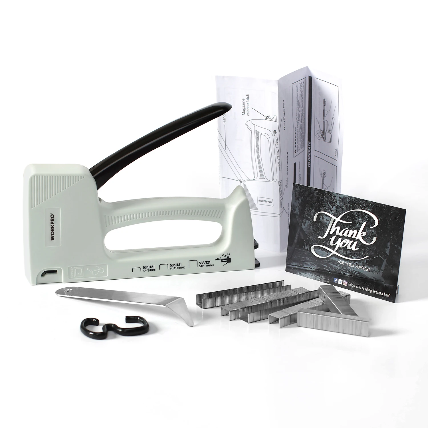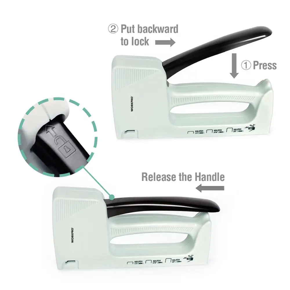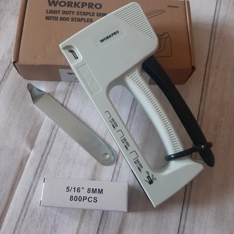 Пистолет для гвоздей WORKPRO светильник, ручной степлер, гвоздезабивной инструмент для мебели, пластиковый степлер с 800 скобами 6 мм8 мм10 мм и съемником скоб