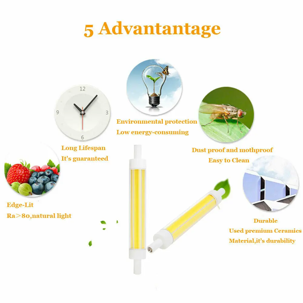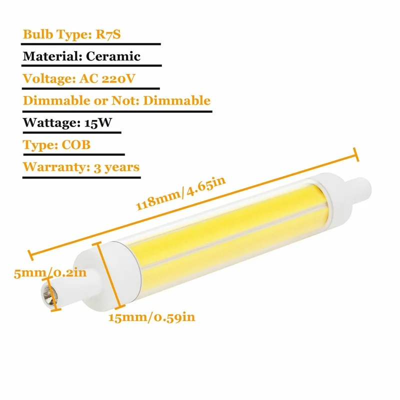 Диммируемая ампула R7S LED COB лампа прожектор 15 Вт 220 В J118 118 мм AC 220 В керамический заменяемый галогенный прожектор стеклянная лампа Bombillas