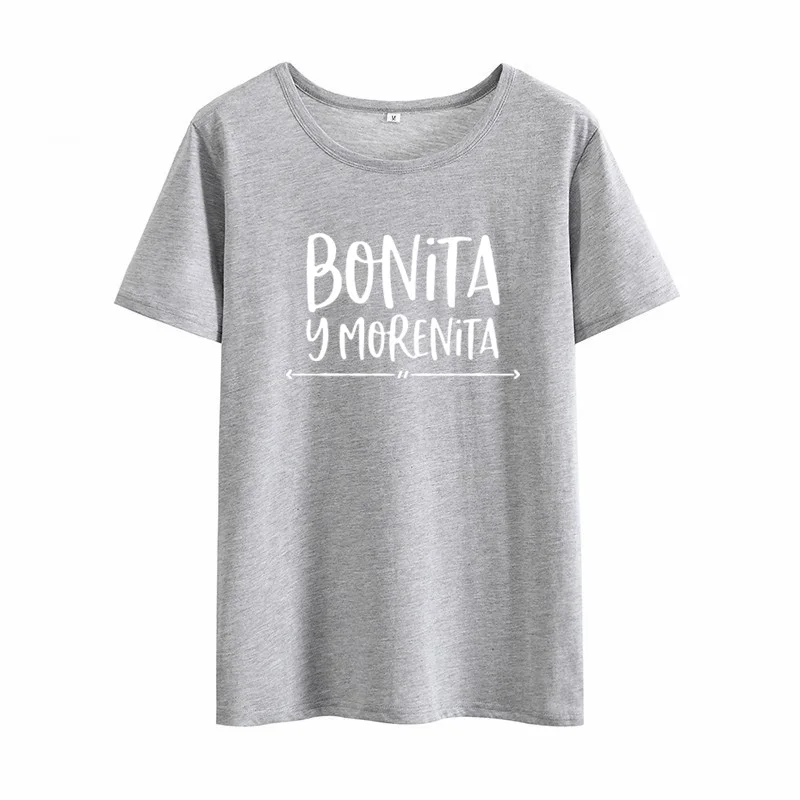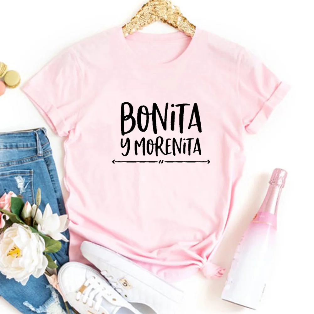 Женская хлопковая футболка с коротким рукавом, забавная футболка Бонита Y Morenita, черный топ, на лето