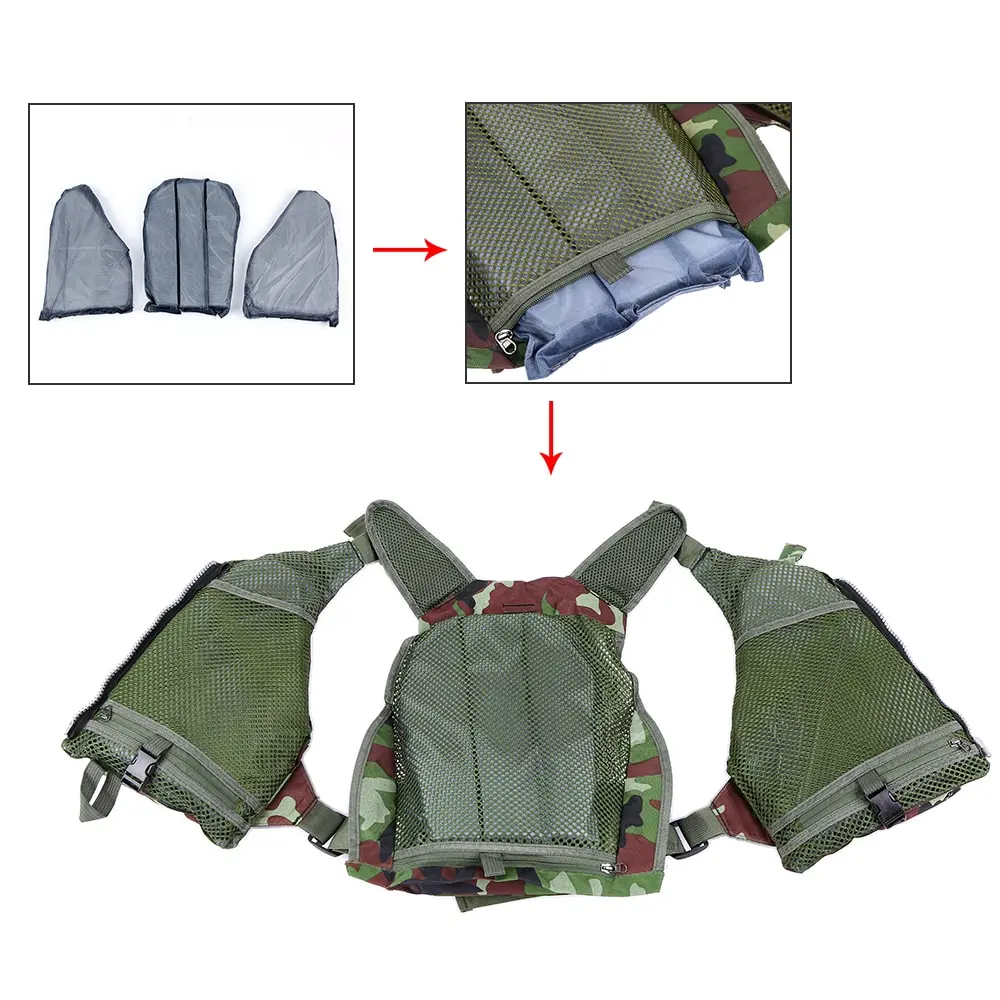 Этот спасательный жилет для рыбалки больше похож на наружный жилет с 11 карманами на молнии и несколькими прикрепляемыми лестницами и аксессуарами петлями на передних и широких отражателях на спине и плече. Под внешним видом это полностью функциональное Флотационное устройство, которое отстегивается для работы в качестве переносчика рыболовных снастей. И этот жилет подойдет практически любому человеку из-за переплетенных регулируемых ремней с пряжкой. Если ваш главный приоритет-это хранение снаряжения, этот спасательный жилет-один из видов. Отлично подходит для рыбалки, КАЯКОВ, каноэ (практически любой тип рыбалки).Особенности:Изготовлен из высококачественного полиэфирного корпуса ripstop и заменяемой пены EPE внутри для превосходной плавучести.Внутри застежка-молния позволяет удобно снимать плавающий пенопласт, чтобы быть супер тонким и дышащим жилетом.Четыре вместительных нагрудных кармана, четыре передних кармана на молнии, два боковых сетчатых кармана и один вместительный задний карман в общей сложности.Аксессуары петли и крепления лестницы на груди приглашают на заказ вложения.Сетка на спине и сетчатая ткань внутри обеспечивают высокую воздухопроницаемость.Открытые стороны оставляют вам больше места для весла, бросания или наведения на воду.Многоярусные регулируемые ремешки с пряжкой подходят практически для любого человека.Отражатели на спине и плечах обеспечивают профессиональную безопасность для спасения жизни.Отлично подходит для ловли нахлыстом, КАЯКОВ, каноэ (довольно много любого типа рыбалки).Технические характеристики:Цвет: серый/зеленый/красный/синий/Камуфляжный мягкий/Камуфляжный без подкладки (на выбор)Материал: полиэстер + пена EPEМаксимальный подшипник: 95 кг/209.44lbРазмер изделия: 55*46 см/21,65*18,1 дюймаВес: 750 г/1.65lbПосылка Размер: 50*44*10 см/19,69*17,32 * 3.94inВес посылка: 780 г/1.71lbПосылка список: 1 * спасательный жилет для рыбалки