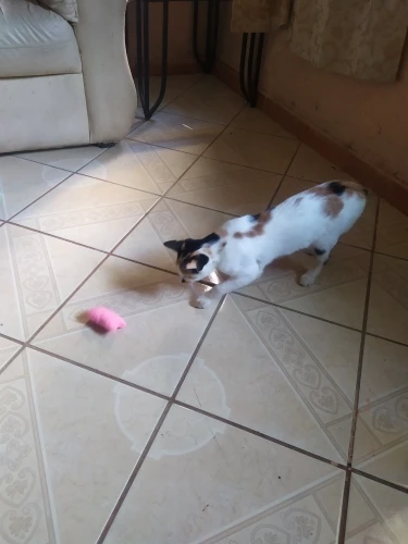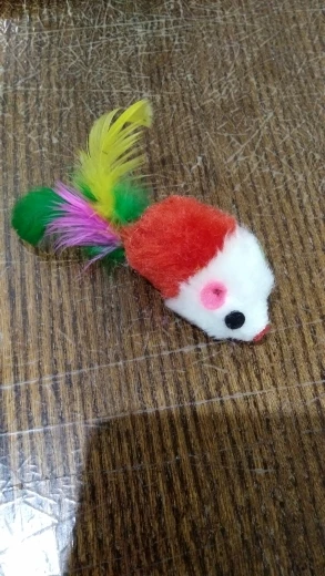 Кот очень доволен, мышку за неделю общипал, сейчас лысая не интересует, мягкая игрушка ещё жива, спасибо