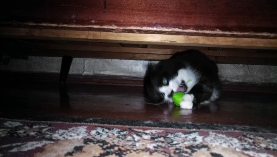 Коту очень понравилась игрушка, оказалось, внутри есть еще шуршащие шарики