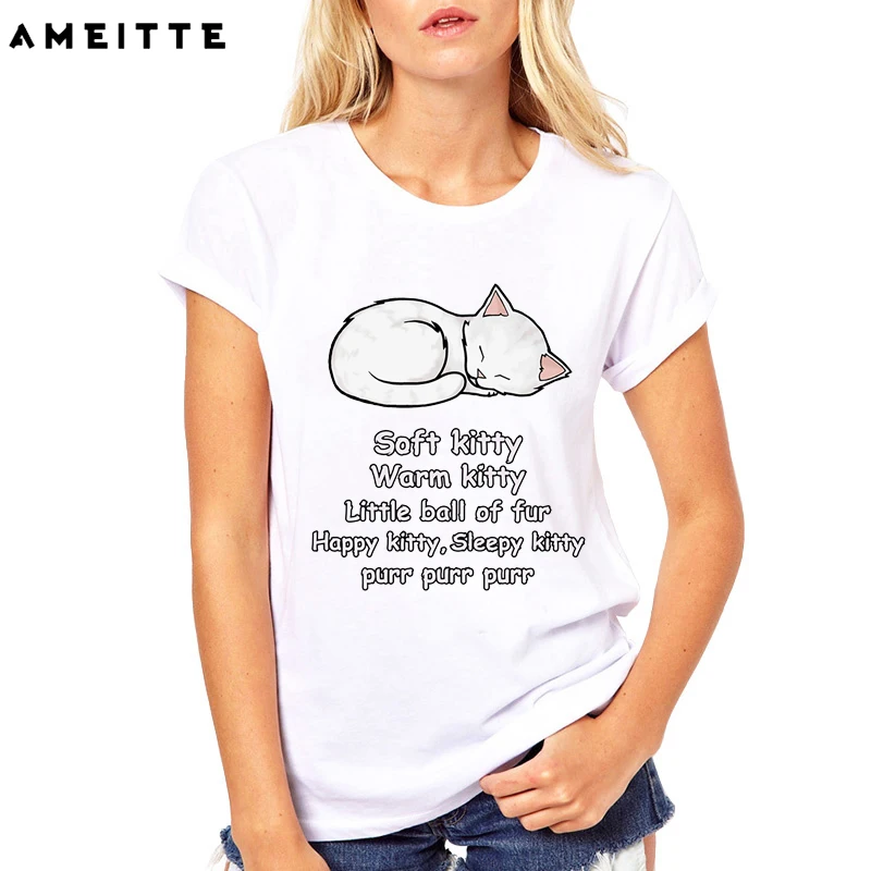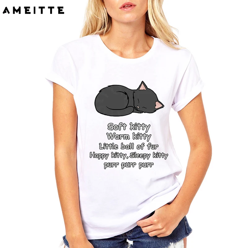 Летние топы AMEITTE, дизайнерские футболки с теории Большого взрыва, Женская милая мягкая модная универсальная женская футболка с принтом Китти, белая футболка