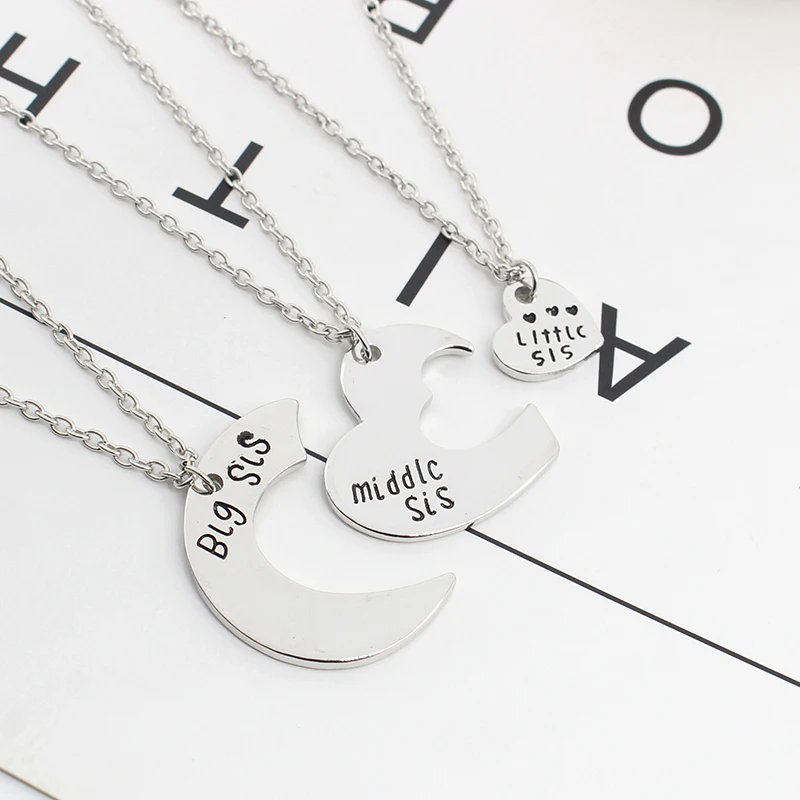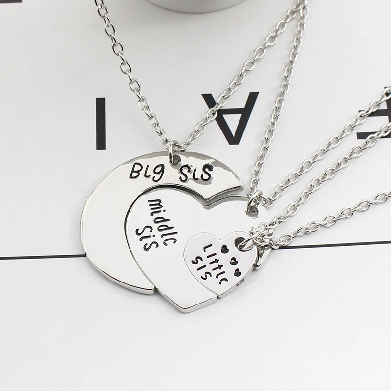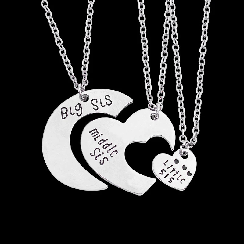 3 шт.компл. большое среднее маленькое ожерелье сестер для женщин девушек сердце пазл Длинная цепочка Кулон Ожерелья Bff Ювелирные изделия Подарки 2021