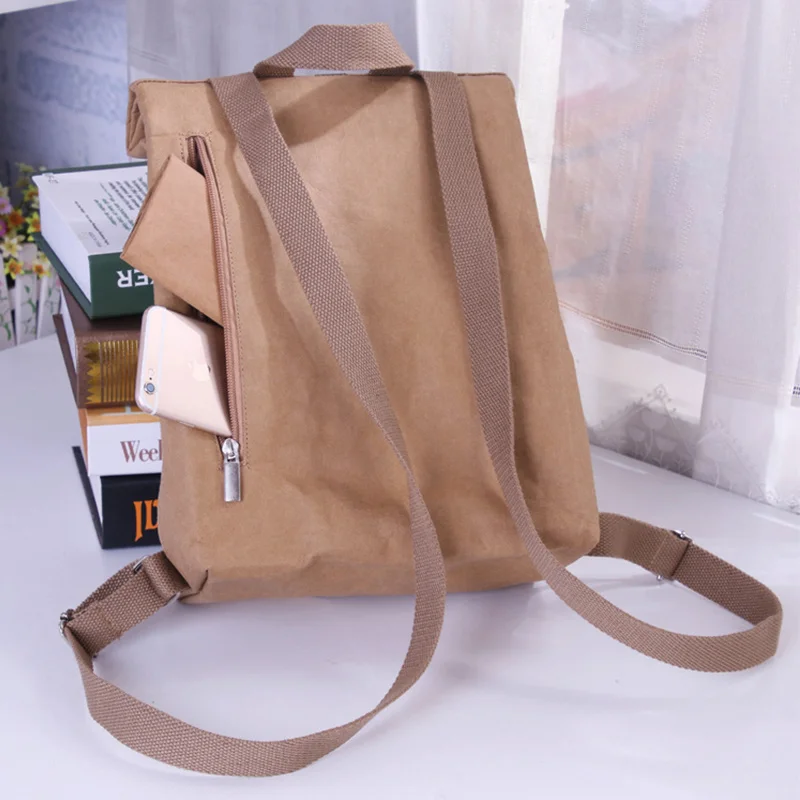 Рюкзак унисекс из крафт-бумаги, Многофункциональный школьный ранец большой вместимости для студентов, моющийся, устойчивый к разрыву, экологически чистый