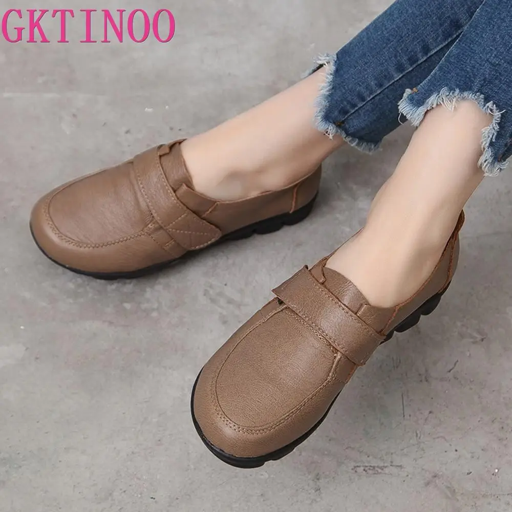 GKTINOOВесенняя женская обувь ручной работы из натуральной кожи; Женская обувь на плоской подошве с застежкой-липучкой; Коллекция 2022 года; Сезон осень; Мягкие лоферы на плоской подошве